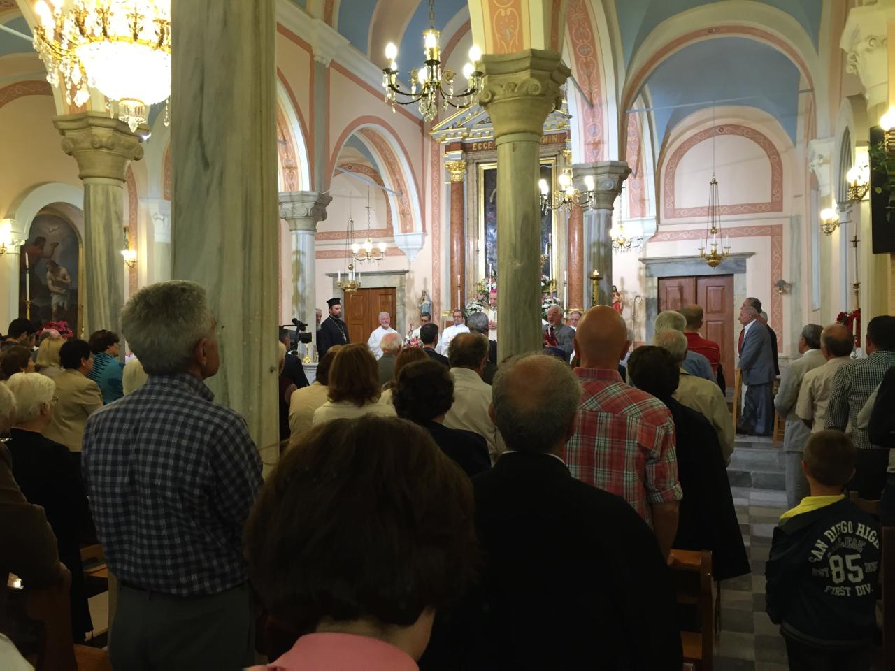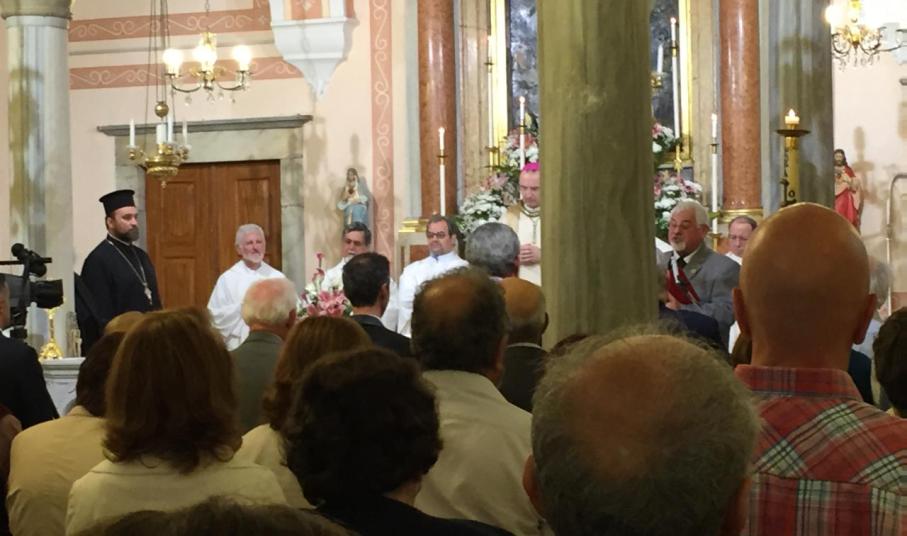 Στη λειτουργία χοροστάτησε ο Καθολικός Επίσκοπος Σύρου Σεβ. π. Πέτρος Στεφάνου, ο οποίος στην ομιλία του αναφέρθηκε στον Ιδρυτή του Τάγματος των Αδελφών Χριστιανικών Σχολών Αγίου Ιωάννη Βαπτιστή Δελασάλ, καθώς και στη δράση των Λασαλιανών Σχολείων που σήμερα αριθμούν 1040 σχολεία με 80 χιλ. καθηγητές και 940 χιλ. μαθητές σε όλο τον κόσμο.