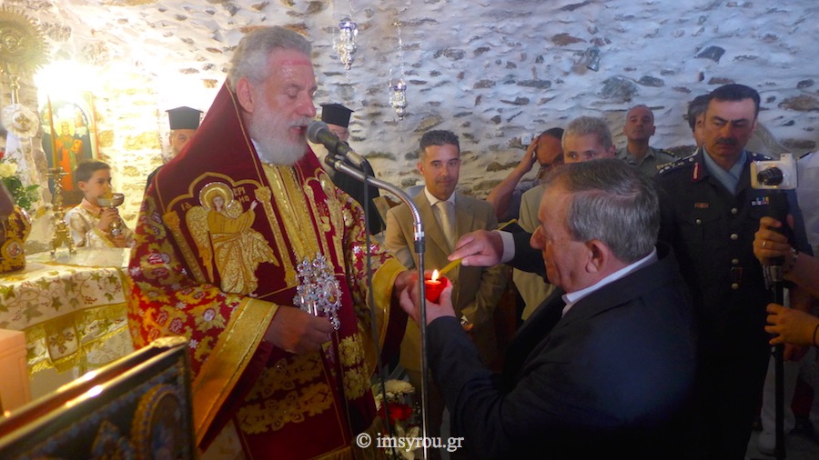 Στη λειτουργία παρευρέθηκαν μεταξύ άλλων ο Δήμαρχος Σύρου – Ερμούπολης Γιώργος Μαραγκός, εκπρόσωποι της δημοτικής αρχής, του στρατού, του ναυτικού και της αστυνομίας, του διοικητού της Ναυτικής Βάσης Σύρου, Πολιτευτών των Κυκλάδων και ο Διευθυντής της Δευτεροβάθμιας Εκπαίδευσης Κυκλάδων, Χρήστος Μιχαλόπουλος.