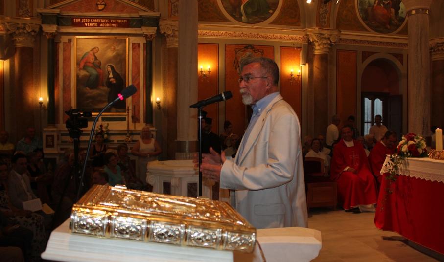 Εμείς οι άνθρωποι νιώθουμε, συνήθως, την ανάγκη να βρεθούμε σε ένα χώρο αποκλειστικά αφιερωμένο στο Θεό για να επικοινωνήσουμε μαζί του, για να ανυψώσουμε το πνεύμα και την καρδιά μας προς Αυτόν. Ένας ναός είναι πάντοτε ο χώρος της παρουσίας του Θεού, ένας χώρος που μας υπενθυμίζει την ύπαρξη του Θεού, που κάνει τη σκέψη μας να στραφεί προς Αυτόν, ένας χώρος που μας κάνει να τον αισθανόμαστε κοντά μας. Για όλους αυτούς που δούλεψαν στο πέρασμα των αιώνων για να διατηρηθεί ακέραιο στο χρόνο αυτό το «σύμβολο» της τοπικής μας εκκλησίας, εμείς σήμερα, συνεχίζουμε τη μακραίωνη ιστορία του, σεβόμενοι τους αγώνες και την προσπάθειά τους για αυτό που μας κληροδότησαν, προσπαθώντας συγχρόνως να το καταστήσουμε σύγχρονο και στην εποχή μας. Παρά τις δυσκολίες, τους κόπους και τις θυσίες που απαιτήθηκαν, τώρα πλέον ο ναός είναι έτοιμος, λαμπερός, ωραίος, πραγματικά αντάξιος των κόπων των δικών μας και των προγόνων μας”.