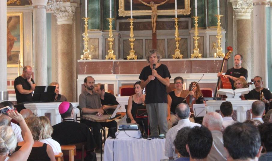 Την εκδήλωση άνοιξε η Ορχήστρα των Κυκλάδων υπό τη διεύθυνση του μαέστρου Νίκου Κυπουργού, ο οποίος είναι και ο ίδιος μέλος του Ινστιτούτου Σύρου. Στην ομιλία του, ο κ. Στεφάνου αναφέρθηκε στις συντονισμένες προσπάθειες και την πολυετή προεργασία για τη συντήρηση και αποκατάσταση του ναού, αποκαλύπτοντας σημαντικά ιστορικά γεγονότα από την ίδρυσή του μέχρι και σήμερα.