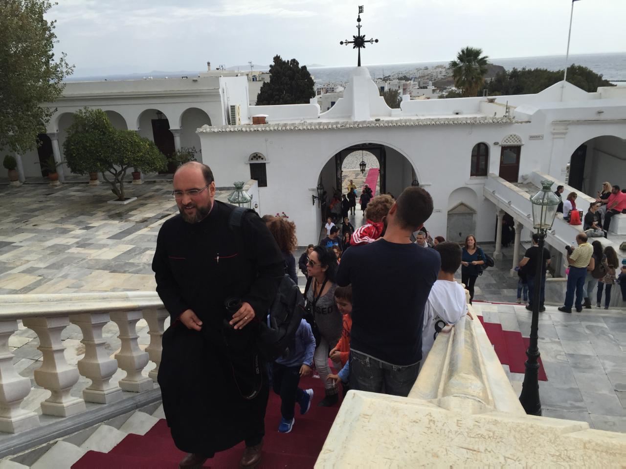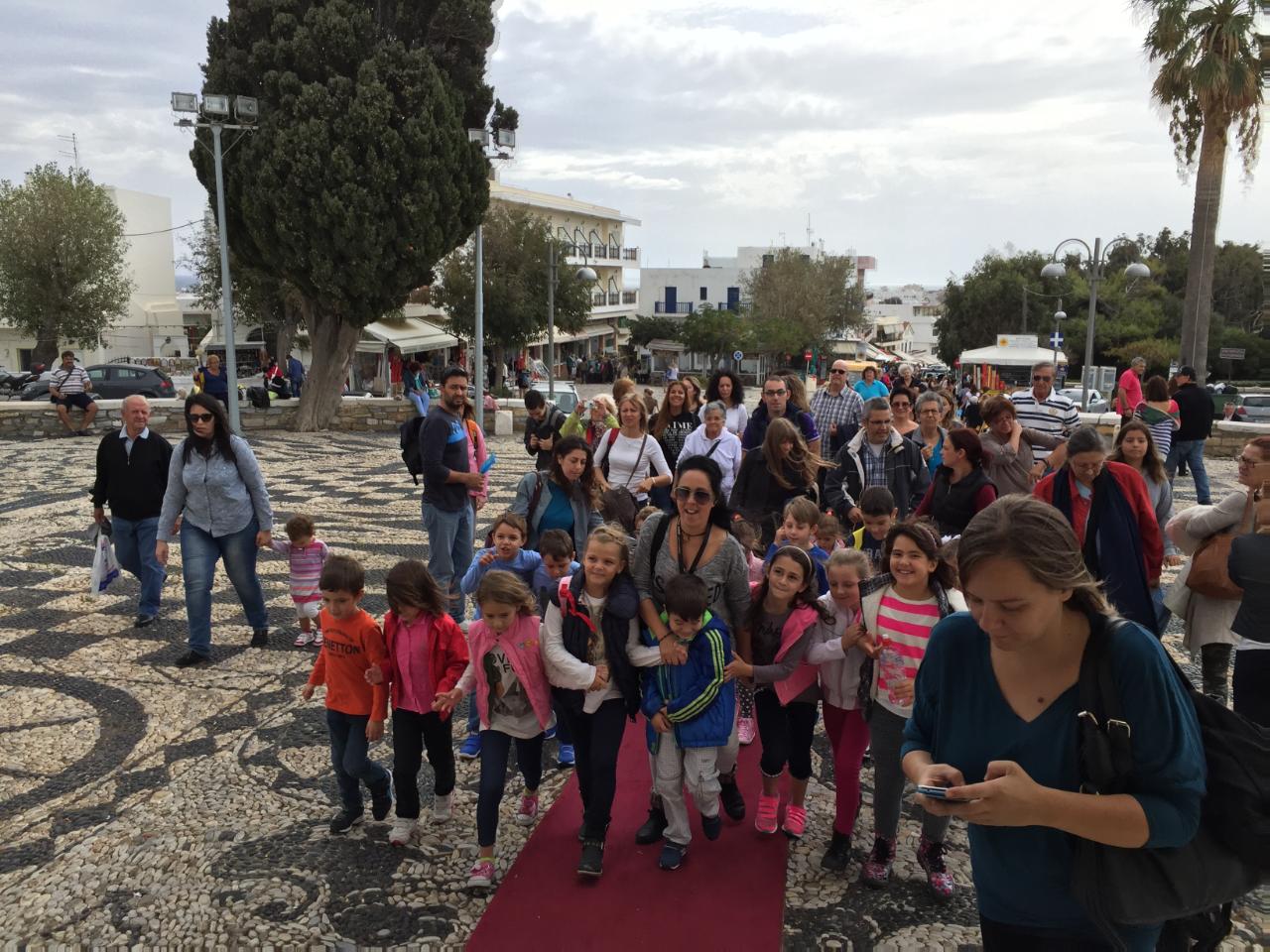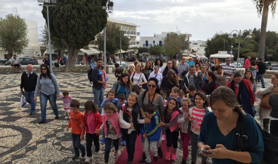 Ανταποκρινόμενοι στο κάλεσμα του εφημέριου π. Φλαβιανού Αλμπέσκου, γονείς και παιδιά, επισκέφτηκαν την Παναγία της Τήνου, όπου είχαν την ευκαιρία να ενημερωθούν από ιερέα του Ιδρύματος για το ιστορικό της εύρεσης της ιεράς εικόνας, μετά από σχετικά οράματα της μοναχής Αδελφής Πελαγίας. Μεταξύ άλλων, έγινε αναφορά και στις θαυματουργές ιδιότητες της εικόνας της Παναγίας. Σημειώνεται ότι εκείνη την περίοδο επικρατούσε ακόμη στο νησί ολέθρια πανώλη με κίνδυνο τη μετάδοση της θανατηφόρας ασθένειας σε όλο το νησί. Αλλά, ω του θαύματος, πολλοί από εκείνους που είχαν προσβληθεί από την πανώλη σώθηκαν παράδοξα, επικαλούμενοι τη βοήθεια της Θεοτόκου.