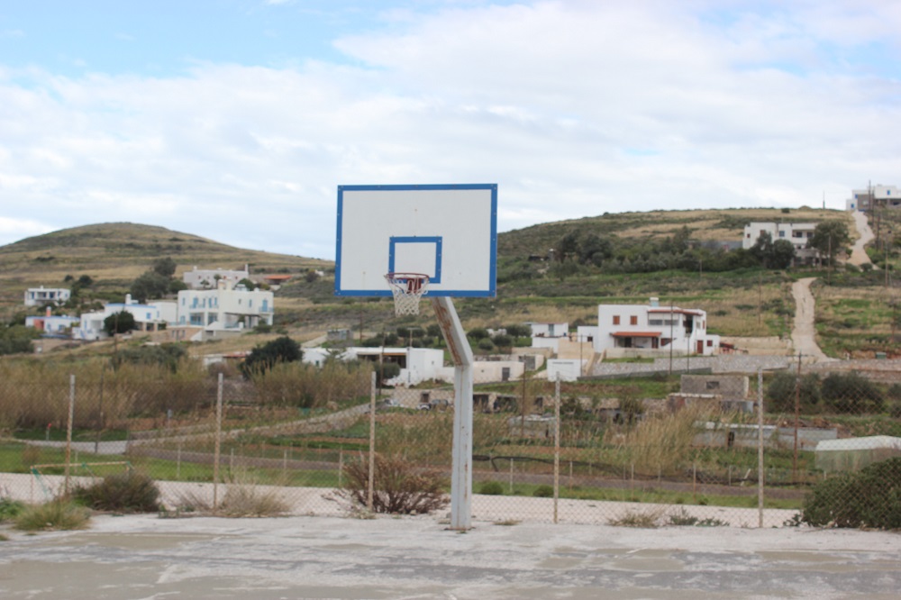 Η ύπαρξη δύο μπασκετών και τίποτα περισσότερο αποτελεί τον μόνο εξοπλισμό που παραπέμπει... σε γήπεδο καλαθοσφαίρισης, ανοικτός χώρος, πλησίον του Ιερού Ναού Αμιάντου Συλλήψεως της Θεοτόκου στη Βάρη.