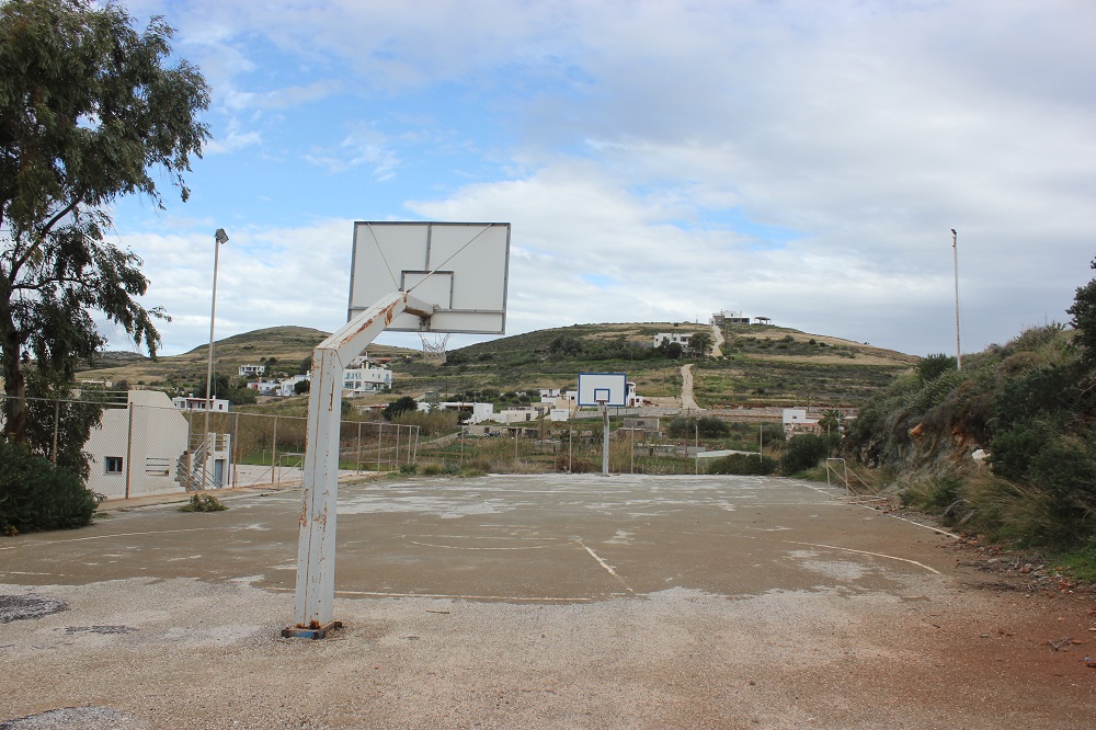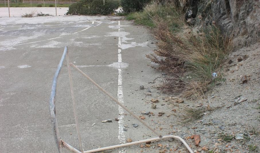 Ειδικότερα, πρόκειται για ένα ανοικτό τμήμα οικοπέδου, το οποίο επισκέπτονται αρκετά από τα παιδιά της γειτονιάς, τα οποία αναπτύσσουν ποικίλες δραστηριότητες καθημερινά και κυρίως τη θερινή περίοδο. Παρόλα αυτά, η εγκατάλειψή του είναι εμφανής καθώς απουσιάζει ειδική περίφραξη σε όλο το μήκος του αν και ο χώρος “συνορεύει” με την οδό Παναχράντου, το δάπεδο είναι ακατάλληλο για χώρο ψυχαγωγίας ή άθλησης και μάλιστα σε τμήματά του έχουν φυτρώσει αγριόχορτα, ενώ, οι δύο μπασκέτες φέρουν σημαντικές φθορές εκτός από τα σημάδια σκουριάς που έχουν “απλωθεί” στις επιφάνειες των στύλων τους. Από τον χώρο απουσιάζει και ο στοιχειώδης φωτισμός ενώ η παρουσία δύο μικρών τερμάτων εντός του εν λόγω γηπέδου, έρχεται να επιβεβαιώσει την ανάγκη εξωραϊσμού του εν λόγω χώρου, αφού τα παιδιά της γειτονιάς επιλέγουν να αξιοποιούν τον ελεύθερο χρόνο τους στο συγκεκριμένο σημείο.