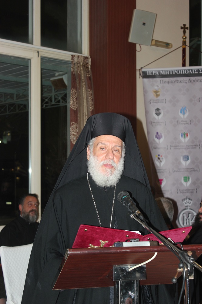 Πέραν του προσκεκλημένου του, κ. Χανδακά, τον οποίο κι ευχαρίστησε θερμά, ο Σεβασμιώτατος προς το τέλος, μνημόνευσε το έργο των ενοριών και των ιερέων, ενώ μίλησε για τις δράσεις της Μητρόπολης, μέσω των οποίων γίνεται γνωστό το σοβαρό έργο της από το οποίο και ωφελούνται πολλοί άνθρωποι, καθώς επίσης μεταφέρονται και τα μηνύματα πίστεως προς όλους.