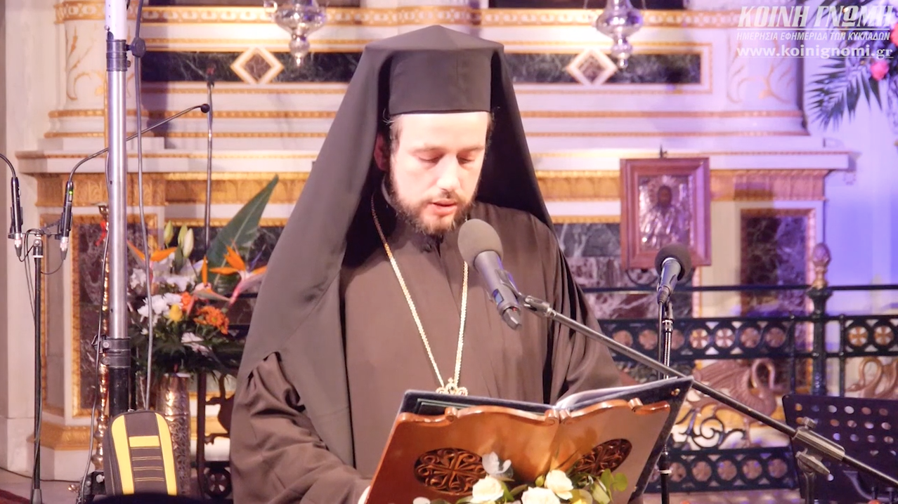 Για την μοναδική ικανότητα του Σεβασμιωτάτου να μηδενίζει αποστάσεις και να υπερβαίνει τις φυσικές και ανθρώπινες δυσχέρειες, προκειμένου να βρίσκεται κοντά στο ποίμνιό του, αναδεικνυόμενος άξιος ποιμένας που αναζητεί, προστατεύει και καθοδηγεί με το μεστό λόγο του τους πιστούς ακόμα και στο πιο απομακρυσμένο νησί, μίλησε ο Δήμαρχος Σύρου – Ερμούπολης, Γιώργος Μαραγκός. Όπως τόνισε, τα δύο τελευταία χρόνια η συνεργασία του Δήμου Σύρου – Ερμούπολης με τον Μητροπολίτη Σύρου είναι κάτι παραπάνω από αγαστή, καθώς ο ίδιος έχει αποδείξει ότι είναι συνοδοιπόρος και συμπαραστάτης στην προσπάθεια που καταβάλλεται για την επίλυση των προβλημάτων που απασχολούν την τοπική κοινωνία.