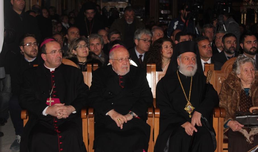 Σύσσωμος ο ιερός κλήρος της Ιεράς Μητροπόλεως Σύρου, ο πρόεδρος της Ιεράς Συνόδου της Καθολικής Ιεραρχίας της Ελλάδος και τέως Επίσκοπος Σύρου Σεβ. Φραγκίσκος Παπαμανώλης, ο Καθολικός Επίσκοπος Σύρου Σεβ. π. Πέτρος Στεφάνου, τους οποίους ο Μητροπολίτης ευχαρίστησε ιδιαιτέρως, εκπρόσωποι της τοπικής αυτοδιοίκησης, των ενόπλων δυνάμεων και των σωμάτων ασφαλείας, αλλά και πλήθος πιστών παρευρέθηκαν στην πνευματική και καλλιτεχνική εκδήλωση που διοργανώθηκε προς τιμήν του Σεβασμιωτάτου Ποιμενάρχη μας από τον Πρόεδρο και τα Μέλη της Εκκλησιαστικής Επιτροπής του Αγίου Νικολάου.