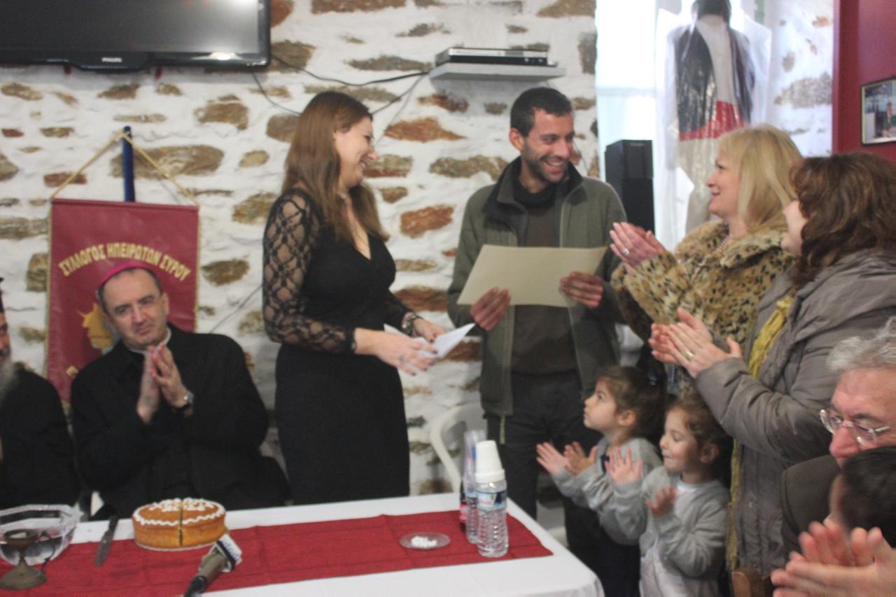 Την πίτα ευλόγησαν ο Καθολικός Επίσκοπος Σύρου Σεβ. π. Πέτρος Στεφάνου και ο π. Κωνσταντίνος Κοντός, οι οποίοι ευχήθηκαν στο Σύλλογο καλή συνέχεια στο αξιόλογο έργο τους που έχει ως στόχο τη διατήρηση των παραδόσεων της Ηπείρου και στη μεταλαμπάδευση των ηθών και των εθίμων στις νεότερες γενιές.