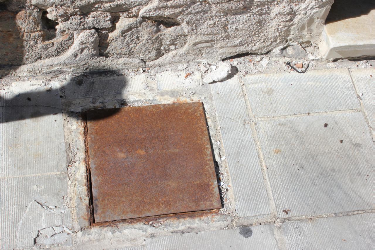 Καθ' όλη την έκταση του πεζοδρομίου υπάρχουν αυτά τα μικρά αυτά φρεάτια, από τα οποία όμως απουσιάζουν τα καπάκια, ενώ σε κάποια άλλα τα καπάκια μετακινούνται πάρα πολύ εύκολα.