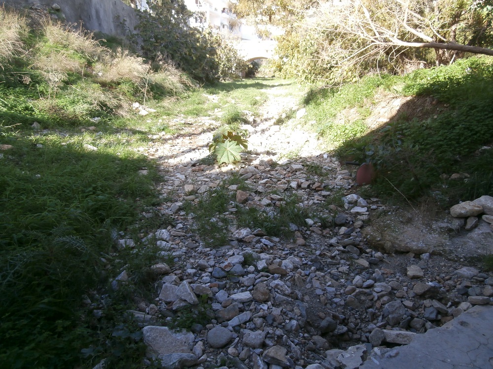 Πέρασμα μετ' εμποδίων θα μπορούσε να χαρακτηρίσει κανείς το μονοπάτι κάτω από το Γεφύρι στην περιοχή του Ταξιάρχη. Όποιος αποφασίζει να διασχίσει το παλιό ρέμα είτε για να βρεθεί στην απέναντι πλευρά, είτε για να κάνει τη βόλτα του θα πρέπει να φορέσει κατάλληλα υποδήματα προκειμένου να αποφύγει με μαεστρία τις πέτρες, που ανεβάζουν τον πήχη της δυσκολίας αρκούντως ψηλά. Αξίζει δε να σημειωθεί ότι κατά τη διάρκεια έντονων καιρικών φαινομένων, τα νερά της βροχής μαζί με τις πέτρες, το χώμα και τα σκουπίδια που παρασύρουν μαζί φτάνουν μέχρι τα σκαλιά των σπιτιών που βρίσκονται στο τέλος του ρέματος από την πλευρά του Ξηροκάμπου. Μολονότι η καταπράσινη αυτή περιοχή φαντάζει ιδανική για περιπάτους, η κεντρική της θέση αποτελεί συνάμα και “κατάρα”, καθώς δεν είναι λίγοι εκείνοι που διασχίζοντας το δρόμο ρίχνουν με περισσή άνεση τα απορρίμματά τους εντός του ρέματος, με αποτέλεσμα εκτός από πλαστικές συσκευασίες και μικροαντικείμενα να υπάρχουν πεταμένες ακόμα και ολόκληρες καρέκλες.