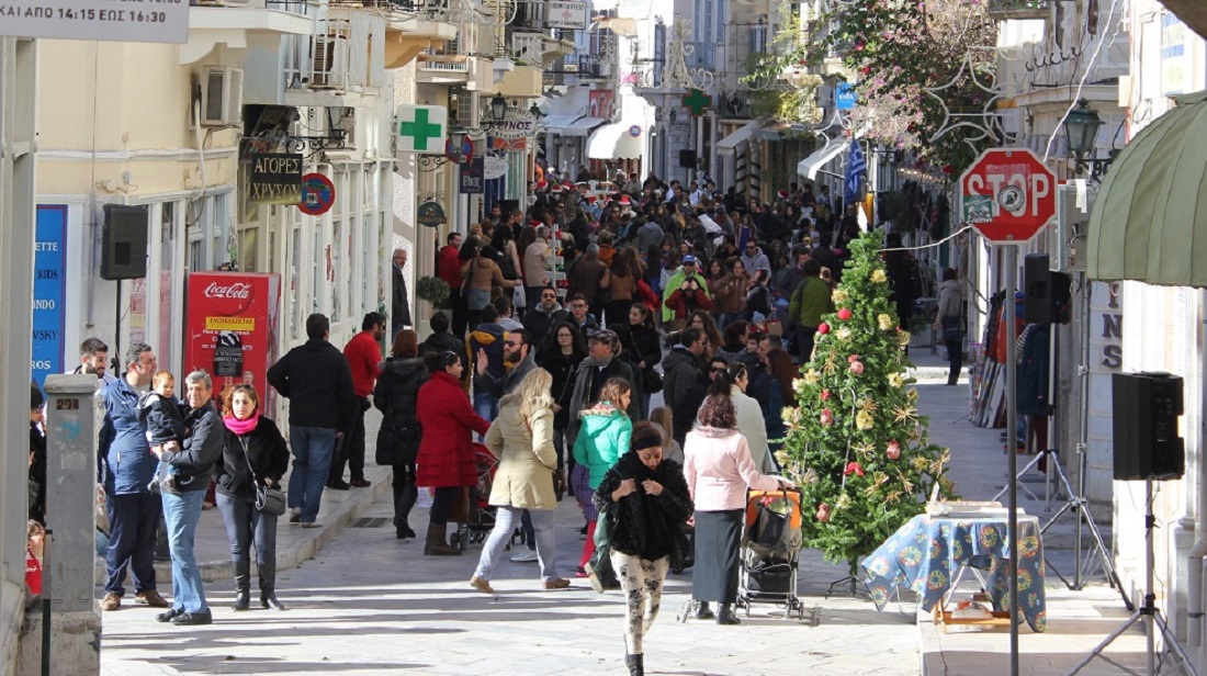 Ειδικότερα, αυξημένη είναι η κίνηση στους εμπορικούς δρόμους της Ερμούπολης κυρίως το τελευταίο δεκαήμερο πριν από τα Χριστούγεννα σύμφωνα με όσα δήλωσαν καταστηματάρχες και επιχειρηματίες που παραχώρησαν δηλώσεις, προκειμένου να σκιαγραφήσουν το εορταστικό και καταναλωτικό κλίμα. “Ο κόσμος κυκλοφορεί στον πεζόδρομο κυρίως τώρα που υπάρχουν εκδηλώσεις. Όμως στα καταστήματα λίγοι μπαίνουν και κάνουν αγορές” δήλωσε ένας επιχειρηματίας, λέγοντας χαρακτηριστικά πως “ο κόσμος δεν έχει χρήματα”.