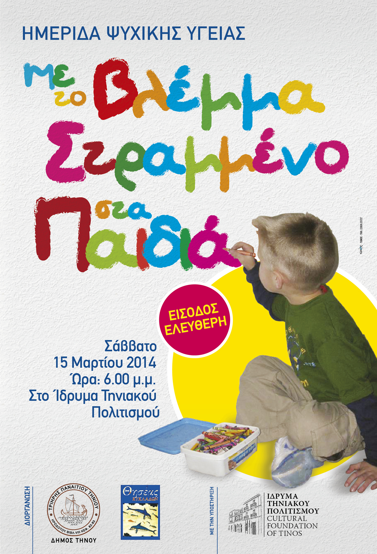 Ημερίδα με τίτλο “Με το βλέμμα στραμμένο στα παιδιά” πραγματοποιούν αύριο στις 18:00, στο ίδρυμα Τηνιακού Πολιτισμού, το Κέντρο Πρόληψης “Θησέας Κυκλάδων” και ο δήμος Τήνου.