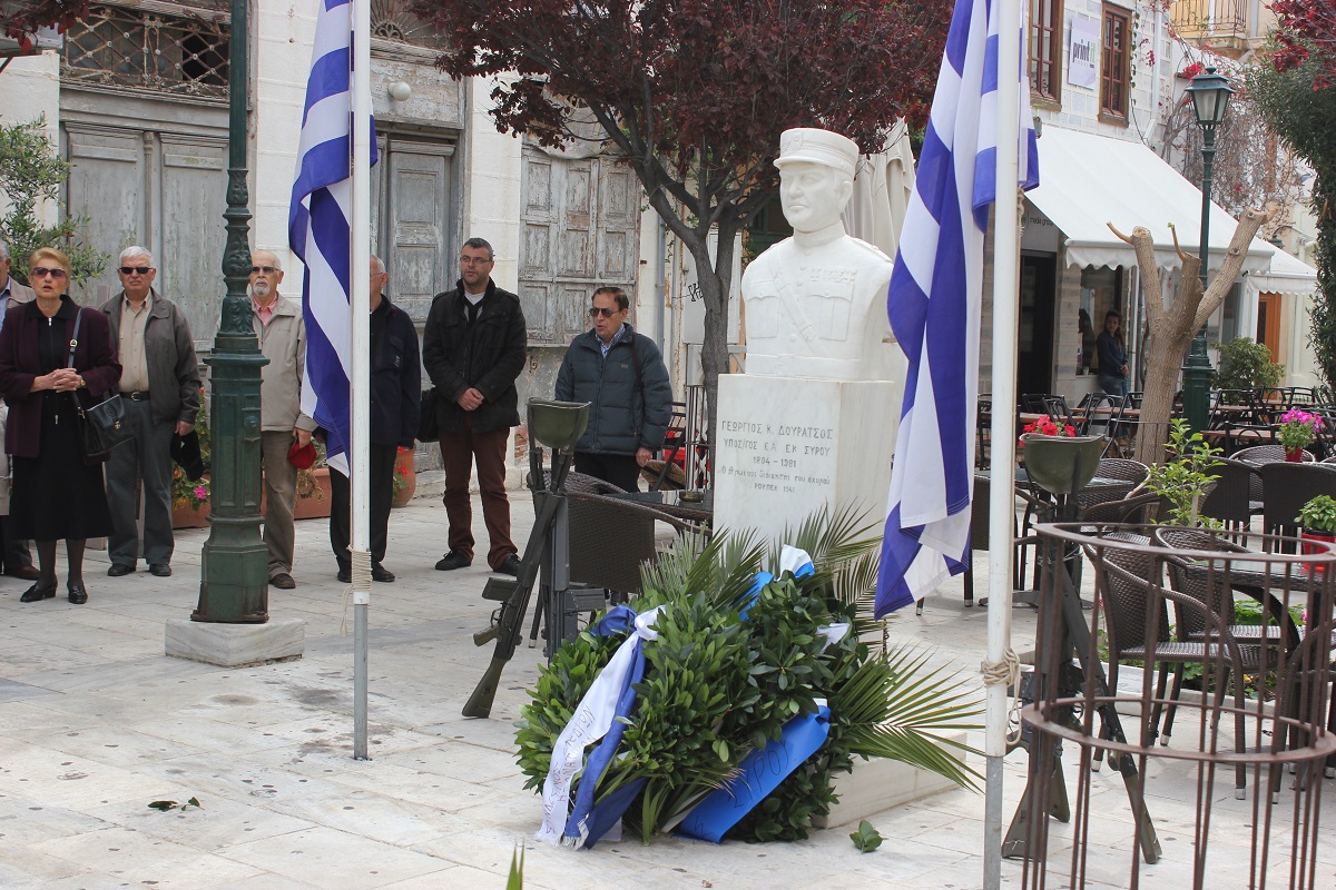 Ο λόγος για την ηρωική αντίσταση που επέδειξε ο Συριανός διοικητής του οχυρού Ρούπελ ενάντια στη γερμανική επίθεση, ο οποίος στο αίτημα των αντιπάλων να παραδοθούν, απάντησε, “Τα οχυρά παραδίδονται μόνο όταν κυριευθώσι υπό του αντιπάλου. Ο αγών θα συνεχισθεί. Πάσα δε απόπειρα προσεγγίσεως του οχυρού θα συντριβεί”.