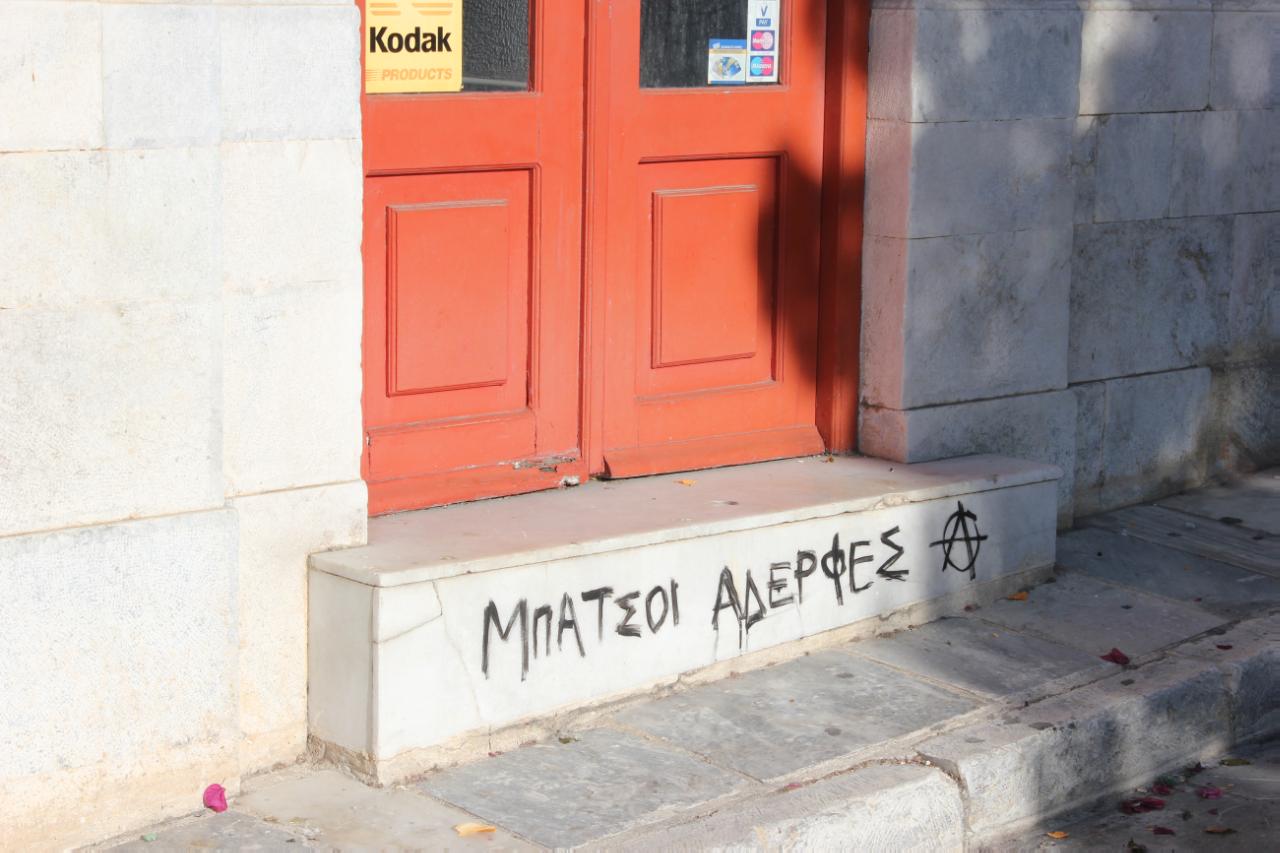 Συνθήματα καταστροφές στο κέντρο της Ερμούπολης