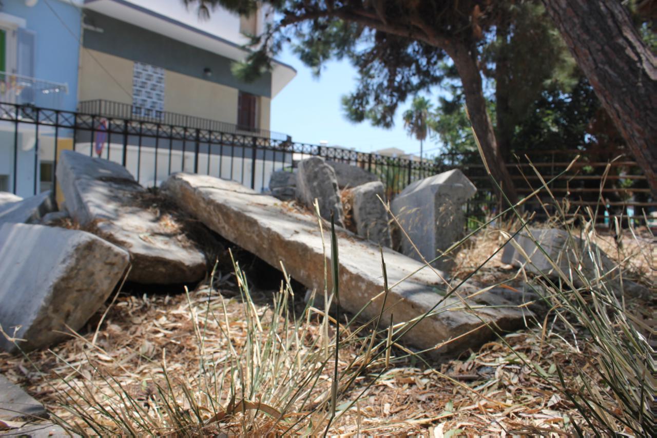 Εικόνα εγκατάλειψης παρουσιάζει ο προαύλιος χώρος όπισθεν του Γενικού Νοσοκομείου Σύρου, καθώς μεγάλος αριθμός πλακών έχουν εναποτεθεί εκεί, δημιουργώντας έναν όγκο φερτών υλικών.