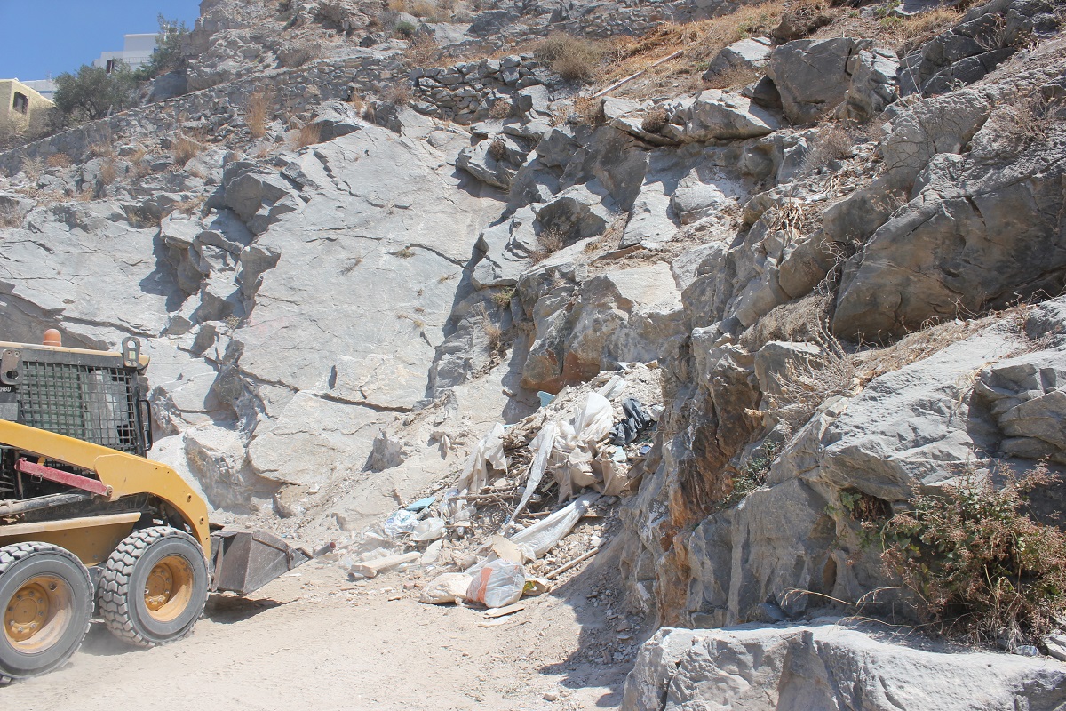 Σκουπίδια τα οποία έχουν “εγκλωβιστεί” στα χόρτα κατά μήκος του δρόμου, αλλά και μεγάλος όγκος μπαζών που έχει συγκεντρωθεί από τις οικοδομικές εργασίες που πραγματοποιούνται τα τελευταία χρόνια στον Ναό ήταν μέχρι και χθες η πρώτη εικόνα που αντίκριζε όποιος επέλεγε το συγκεκριμένο μονοπάτι για να εισέλθει στον οικισμό.