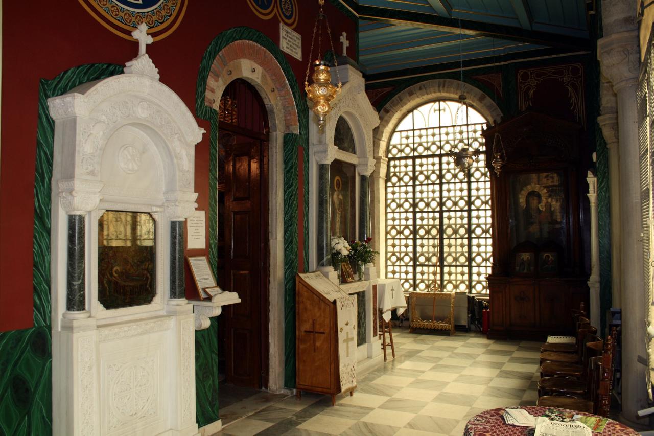 Η ομώνυμη εκκλησία της Ερμούπολης, γνωστή ως “εκκλησία των Ψαριανών”, από το όνομα της συνοικίας στην οποία ανήκει, χτίστηκε στα 1828-29 με χρήματα του Υδραίου Θεόδωρου Πλατανίτη. Όπως σημειώνει η συγγραφέας, “τα θεμέλια της έμοιαζαν να έχουν υγρασία μα οι πιο παλιοί έλεγαν πως δεν είναι φυσική υγρασία, αλλά τα δάκρυα των Ψαριανών που είχαν χύσει πικραμένοι για τον ξεριζωμό τους και την τύχη της πατρίδας τους, τα χρόνια της τουρκοκρατίας. Ξεκληρισμένοι είχαν βρει μια αγκαλιά στο λιμάνι της Σύρου. Αυτό το νησί άνοιγε την αγκαλιά του στους κατατρεγμένους Έλληνες που έστησαν εκεί μια δεύτερη πατρίδα χαρίζοντάς της τα ομορφότερα κομμάτια του πολιτισμού της, τις γεύσεις και τις μουσικές μελωδίες. Ο όμορφος αυτός ναός ανακαινίστηκε πολύ αργότερα, το 1847 και τα εγκαίνια έγιναν το 1850. Την ίδια μέρα έγινε και η τελετή της ανάγνωσης του Συνοδικού Τόμου της αναγνώρισης του Αυτοκέφαλου της Ελλαδικής Εκκλησίας. Χρόνια μετά, στη γερμανική Κατοχή, 23 Οκτωβρίου 1943 η Σύρος βομβαρδίζεται ανελέητα από τη θάλασσα. Ένα από τα πληγωμένα της κτίρια ήταν και η εκκλησία των Ψαριανών. Τον Ιανουάριο του 1951 η εκκλησία είναι και πάλι ανακαινισμένη”.