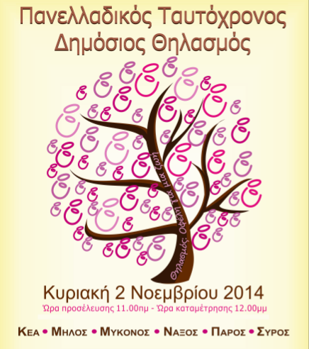 Το 5ο Πανελλαδικό ταυτόχρονο δημόσιο θηλασμό διοργανώνει το Πανελλήνιο δίκτυο εθελοντικών ομάδων υποστήριξης μητρικού θηλασμού και μητρότητας, στο πλαίσιο του εορτασμού της Παγκόσμιας Εβδομάδας Μητρικού Θηλασμού. Με αφορμή το Πανελλαδικό δημόσιο θηλασμό, οι διοργανωτές της εθελοντικής ομάδας υποστήριξης μητρικού θηλασμού Κυκλάδων, προσκαλούν όσες μητέρες ενδιαφέρονται την Κυριακή 2 Νοεμβρίου στις 11:00 στην εκδήλωση που λάβει χώρα στην αίθουσα Τέχνης «Γιάννη και Ελένη Βάτη» στην πλατεία Μιαούλη. Παράλληλες εκδηλώσεις θα διοργανωθούν και στα νησιά της Κέας, της Μήλου, της Μυκόνου, της Νάξου και της Πάρου.