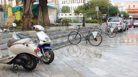 Πραγματικότητα έγινε πλέον η πολυετής επιθυμία των ποδηλατών του νησιού για τη χωροθέτηση θέσεων στάθμευσης αποκλειστικά για ποδήλατα.