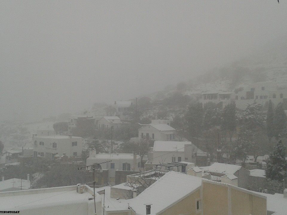 Με σοβαρές βλάβες στην ηλεκτροδότηση της Τήνου, αλλά και με αποκλεισμό τουλάχιστον οκτώ χωριών (Καρδιανή, Υστέρνια, Πάνορμος, Πύργος, Κώμη, Στενή, Φαλατάδος και Τριπόταμος) ήρθαν αντιμέτωποι οι κάτοικοι του νησιού και η Δημοτική Αρχή, αφού η μεγάλης κλίμακας κακοκαιρία σήμανε συναγερμό με τους αρμόδιους του Δήμου να βρίσκονται στις επάλξεις από κοινού με την Αστυνομία, τους ιδιώτες και τους δημότες, προκειμένου να αντεπεξέλθουν στα σοβαρά προβλήματα. Σε γενικές γραμμές, ο δήμαρχος Τήνου, Σίμος Ορφανός, τόνισε πως, εκτιμάται ότι, “το χιόνι στις ορεινές περιοχές ξεπέρασε το ενάμιση μέτρο, με δώδεκα οχήματα συνολικά να επιχειρούν συστηματικά για τη διάνοιξη του οδικού δικτύου επί αρκετές ώρες.