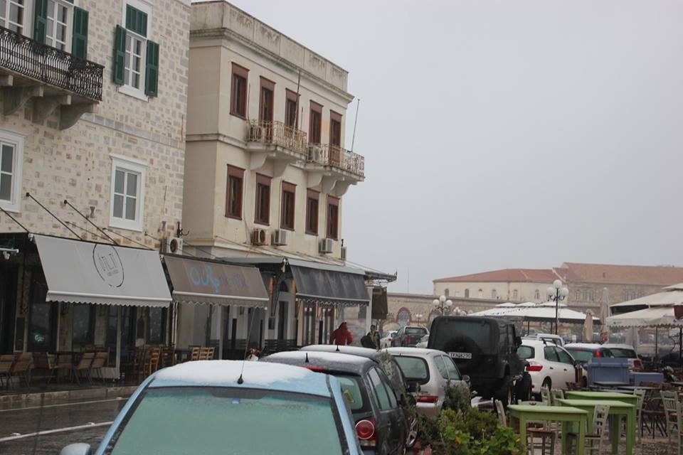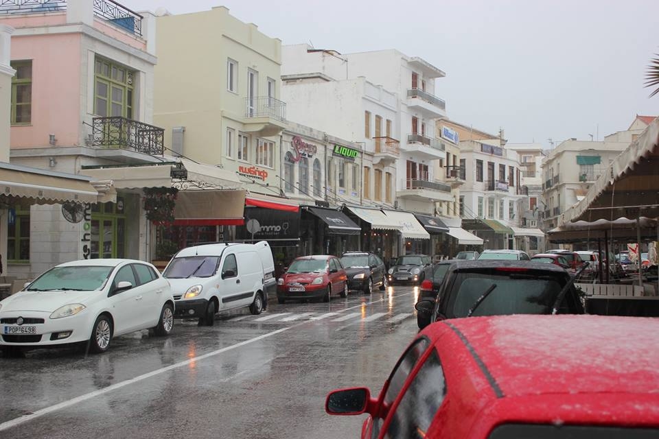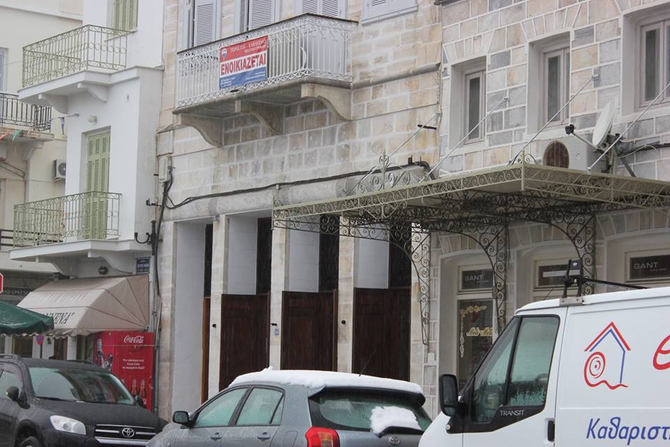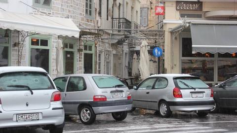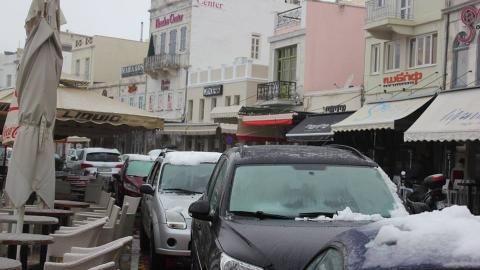 Κατά τη διάρκεια της έντονης χιονόπτωσης το βράδυ της Τρίτης, μεγάλος ήταν ο αριθμός των σταθμευμένων οχημάτων μπροστά και έναντι των καταστημάτων στην παραλιακή οδό της Ερμούπολης. Εκτός από την ουρά των αυτοκινήτων, η οποία ξεκινούσε από το άγαλμα της Εθνικής Αντίστασης και κατέληγε στην πλατεία Κανάρη, δεν έλειψαν και οι οδηγοί που για μερικά μόνο εκατοστά δεν πάρκαραν τα οχήματά τους μέσα στην καφετέρια, την οποία επισκέφτηκαν.