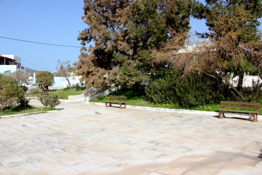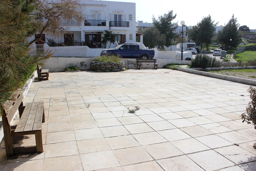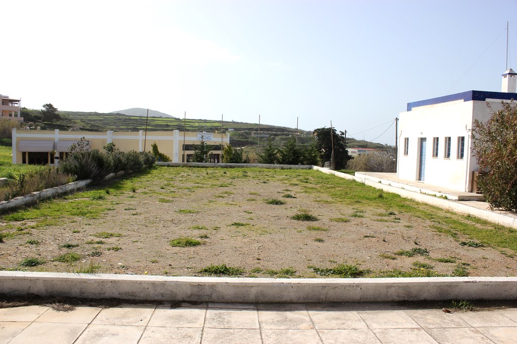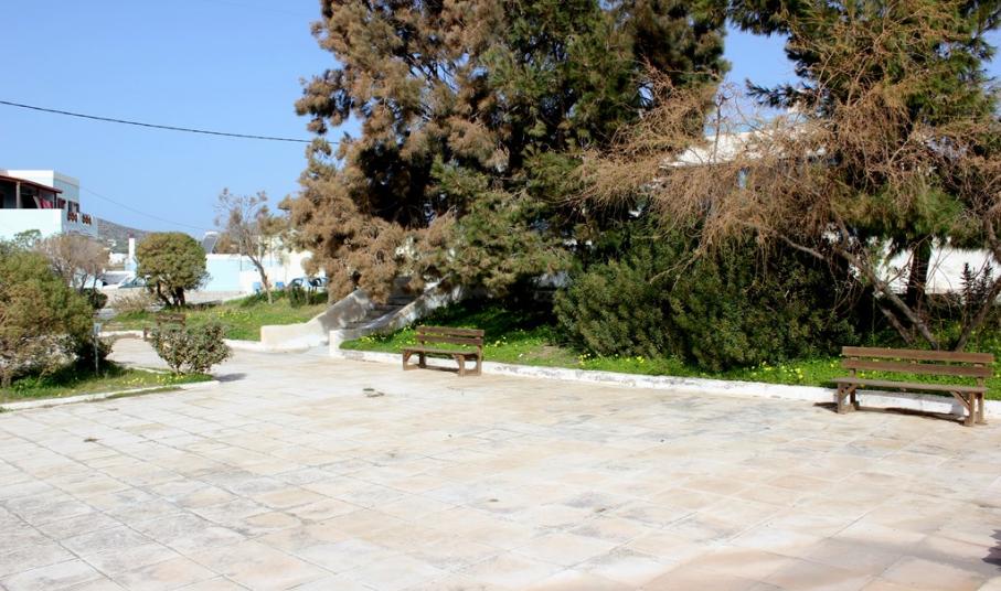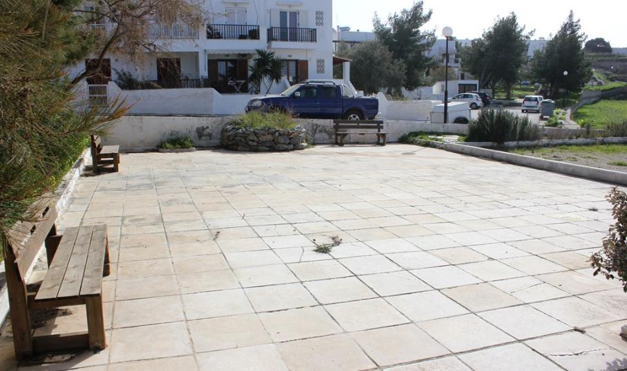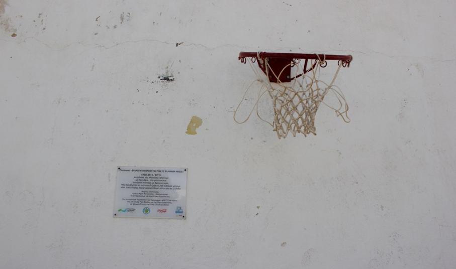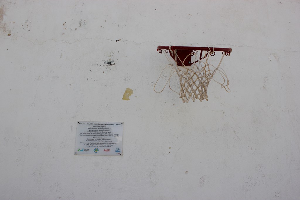Όπως καθαρά φαίνεται στη μικρή ταμπέλα, η οποία είναι τοποθετημένη στο χώρο, το έργο αυτό υλοποιήθηκε με χρηματοδότηση από ιδιωτική πολυεθνική εταιρία, στο πλαίσιο του ευρύτερου περιβαλλοντικού της προγράμματος «Συλλογή Όμβριων Υδάτων Σε Ελληνικά Νησιά». Το έργο περιελάμβανε ανάπλαση της πλατείας με παγκάκια, νέα φύτευση και αυτόματο πότισμα με βρόχινο νερό, του οποίου η συλλογή γίνεται σε υπόγεια δεξαμενή νέας τεχνολογίας 200 κ.μ., που είναι εγκατεστημένη κάτω από το γήπεδο.