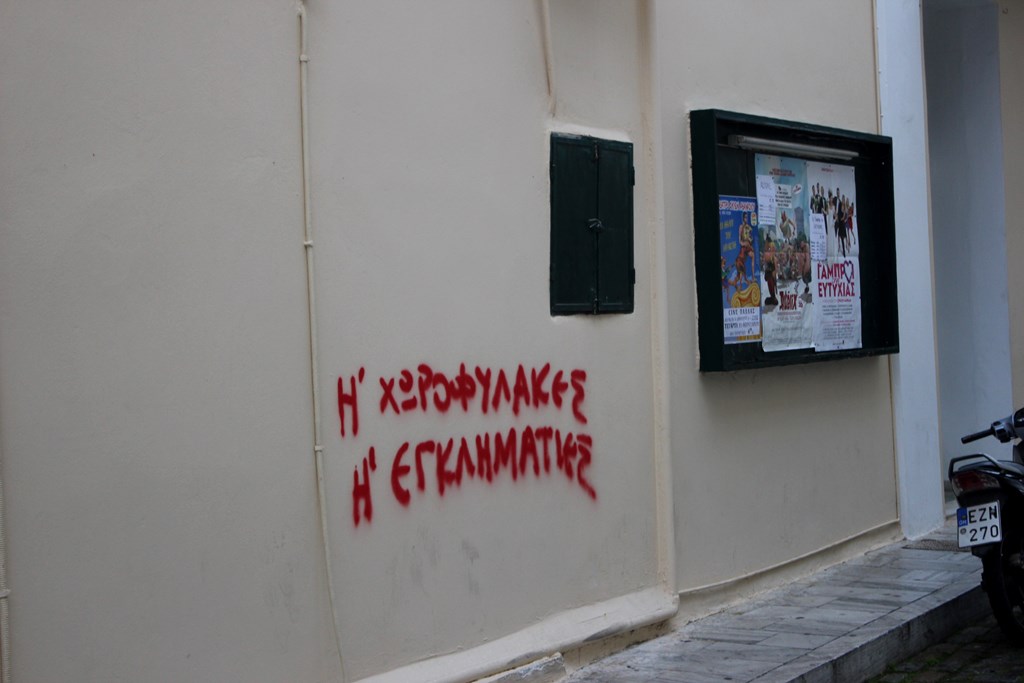 Τα «έργα τέχνης» στους τοίχους των νεοκλασικών αναφέρονται σε πολιτικές ή γηπεδικές προτιμήσεις, σε προσωπικά προβλήματα των «καλλιτεχνών», αλλά τα περισσότερα αποτελούνται από υπογραφές τύπου «tag».