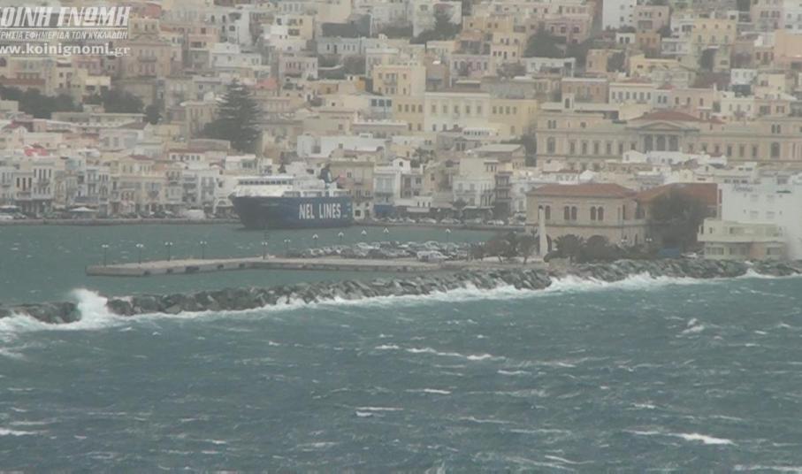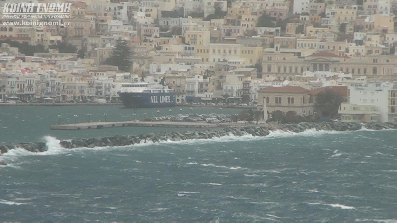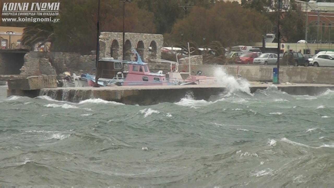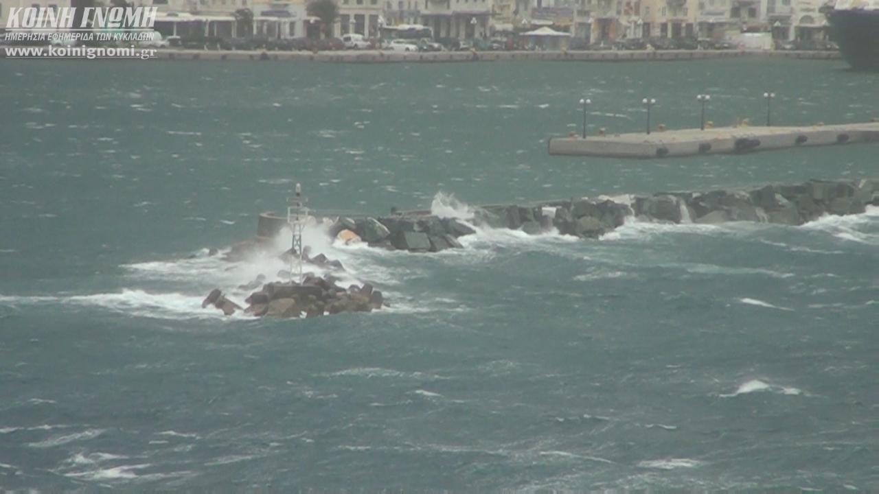 Το “web tv” κατέγραψε και παρουσιάζει σήμερα μοναδικές εικόνες από το “αγριεμένο” πρόσωπο της πρωτεύουσας των Κυκλάδων, η οποία χτυπήθηκε από την κακοκαιρία, όπως και το σύνολο των νησιωτικών περιοχών. Καθίσταται γνωστό ότι εξακολουθούν να μην πραγματοποιούνται τα δρομολόγια των πλοίων για το βορειοανατολικό Αιγαίο, τις Κυκλάδες, τα Δωδεκάνησα και την Κρήτη, καθώς είναι σε ισχύ η απαγόρευση απόπλου από το λιμάνι του Πειραιά.