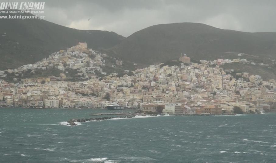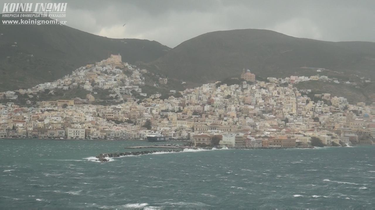 Χαμηλές θερμοκρασίες και θυελλώδεις βορειοανατολικοί άνεμοι που κατά τόπους αγγίζουν τα 11 μποφόρ, ξεπερνώντας σε ταχύτητα τα 110 χλμ την ώρα, είναι τα κύρια χαρακτηριστικά της ισχυρής κακοκαιρίας που τα τελευταία εικοσιτετράωρα πλήττει και τη Σύρο.