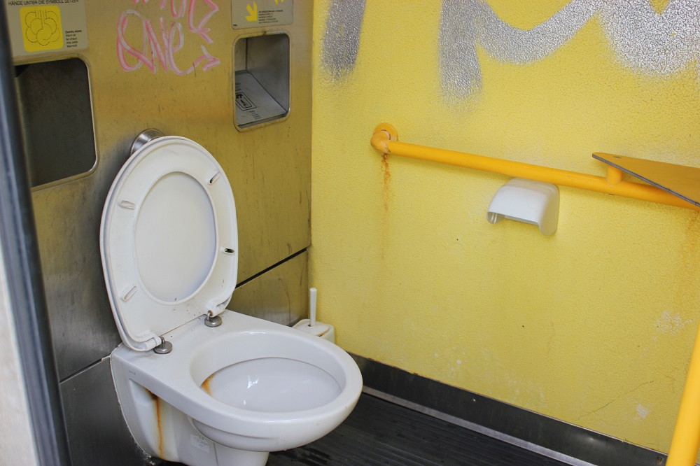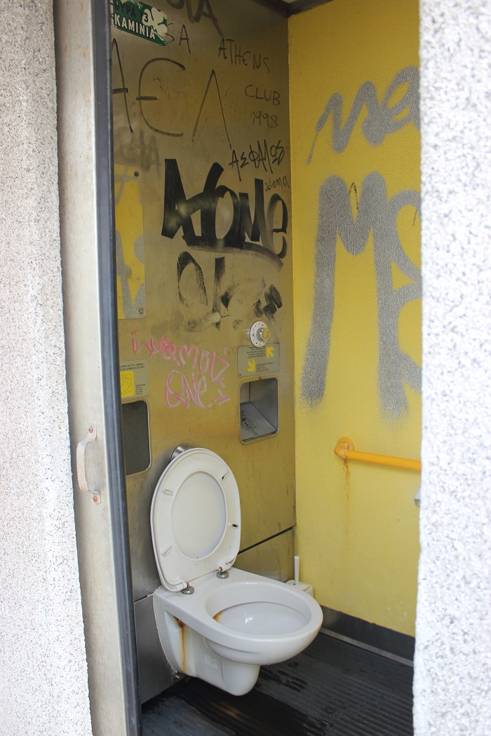 Κρίνεται περιττό να σχολιαστεί αναλυτικά η σημερινή κατάσταση που αυτές έχουν περιέλθει, καθώς το φωτογραφικό υλικό αναδεικνύει πλήρως το γεγονός πως υπάρχουν σημαντικές φθορές στον κερματοδέκτη, στις εξωτερικές επιφάνειές τους, αλλά κυρίως στο εσωτερικών των τουαλετών με πολλά συνθήματα από σπρέι αλλά και μικρότερες υλικές ζημιές. Επισκεπτόμενος κανείς τις συγκεκριμένες τουαλέτες δε, αντιλαμβάνεται σε μεγάλο βαθμό τη δυσοσμία που επικρατεί.