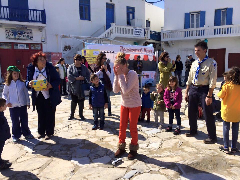 Την επόμενη ημέρα το 1ο Σύστημα Ναυτοπροσκόπων Μυκόνου με τη συνδρομή της Περιφερειακής Εφορίας Προσκόπων Κυκλάδων και του ΣΕΠ διοργάνωσε μπροστά από το Δημαρχείο παιχνίδια εμπιστοσύνης, συνεργασίας, ομαδικότητας και αλληλεγγύης, στο πλαίσιο της πανελλήνιας δράσης “Το καλύτερο σάντουιτς είναι το μισό”. Λίγο αργότερα, υπέροχες μελωδίες και εικαστικές δημιουργίες άγγιξαν τις καρδιές μικρών και μεγάλων. Η Βίκη Σταθοπούλου (πιάνο), ο Giuseppe Fabris και ο Βασίλης Καβουρίδης (εικαστικός) παρουσίασαν στην ΚΔΕΠΑΜ την εκδήλωση “Ηχόχρωμα στο φως”, δίνοντας τον πρώτο λόγο στο συναίσθημα.