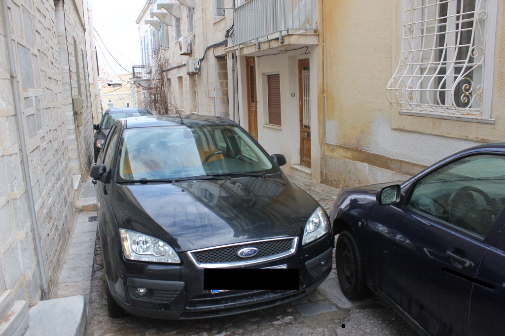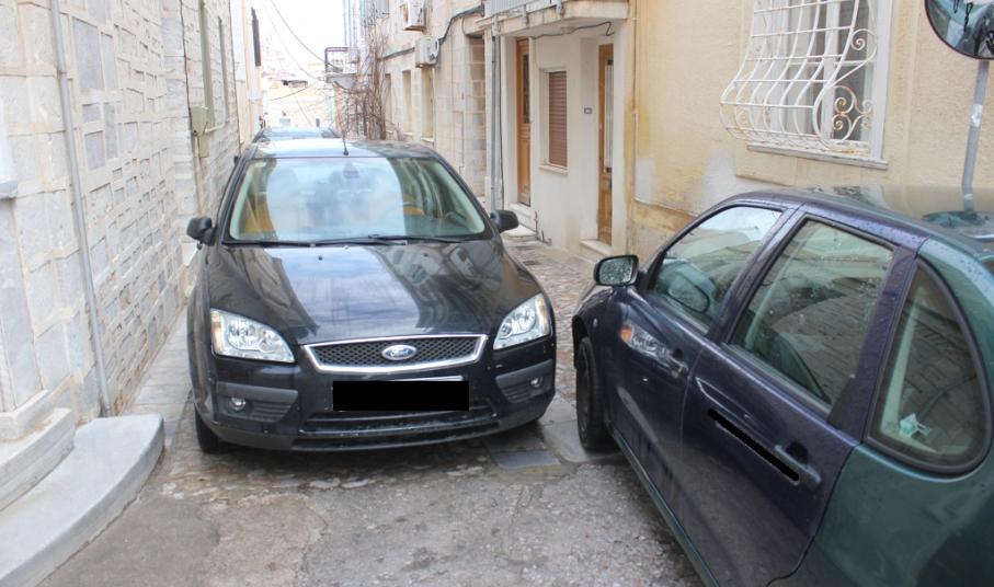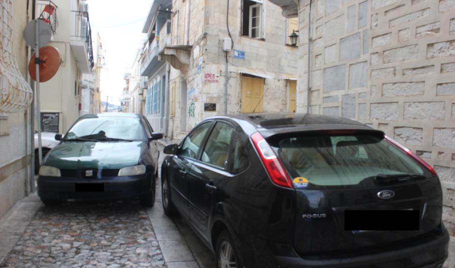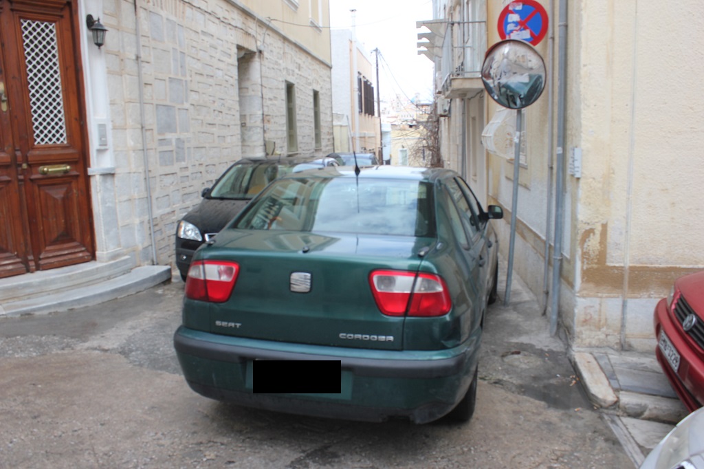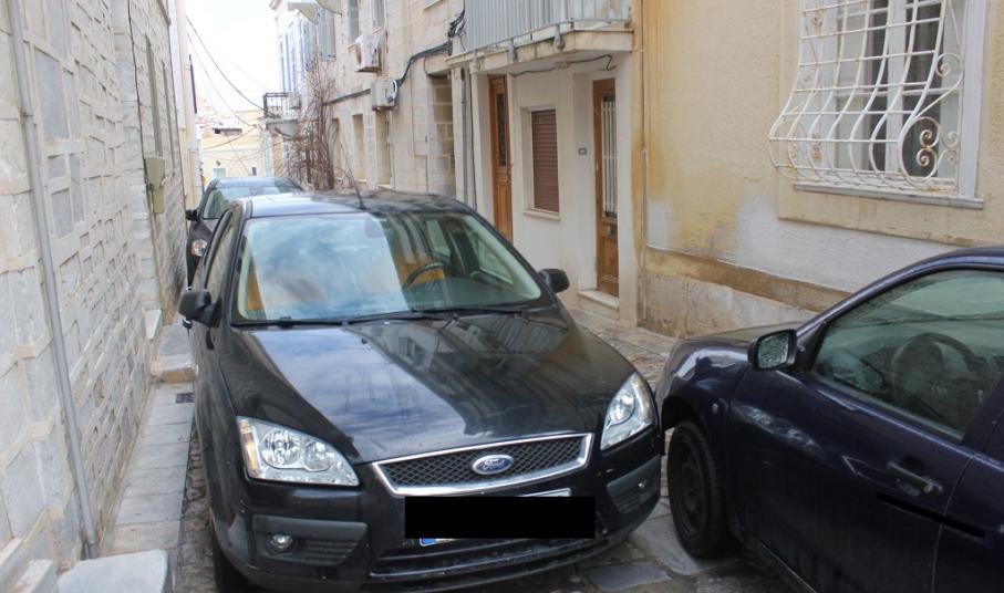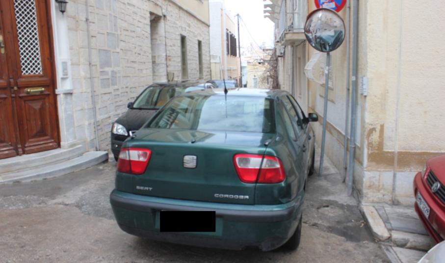 Ακόμη μια φορά, όπως φαίνεται στο φωτογραφικό υλικό, στην περιοχή πίσω από τον Ιερό Ναό Κοιμήσεως της Θεοτόκου της Ερμούπολης, ασυνείδητοι οδηγοί σταθμεύουν τα αυτοκίνητά τους σε μικρές πεζοδρομημένες οδούς, οι οποίες μάλιστα οδηγούν σε σκαλιά – με αποκλειστική, δηλαδή, διέλευση των πεζών.