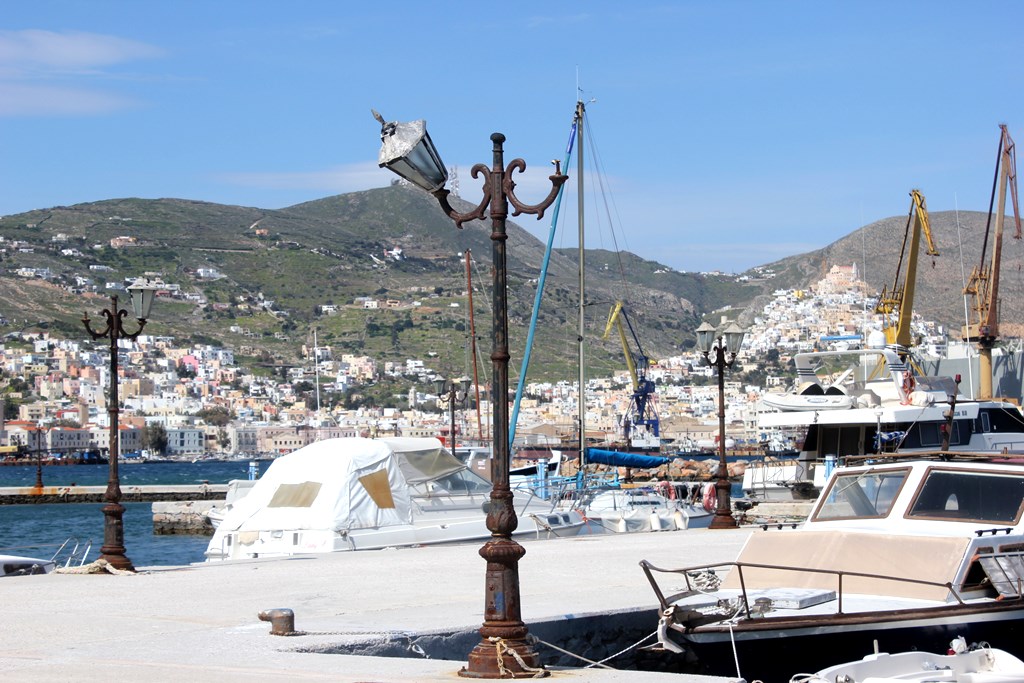 Το πραγματικά λυπηρό, είναι πως σε αυτή την πραγματικά όμορφη γωνιά της Σύρου, με τη θέα, την οποία πλήθος περαστικών, ντόπιων και τουριστών, σταματά για να θαυμάσει, το πάλαι ποτέ «σύγχρονο» δίκτυο φωτισμού έχει μετατραπεί σε μια χρόνια πηγή σκουριάς που καταλήγει στη θάλασσα, καθώς δεν έχει συντηρηθεί ποτέ, όπως τίποτε άλλο στην περιοχή της μαρίνας, αλλά και σε κίνδυνο για τους επισκέπτες της, καθώς αποσαθρωμένα κομμάτια των μεταλλικών στύλων, αποκολλώνται συνεχώς.
