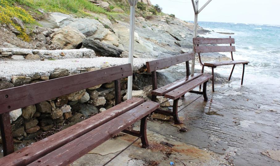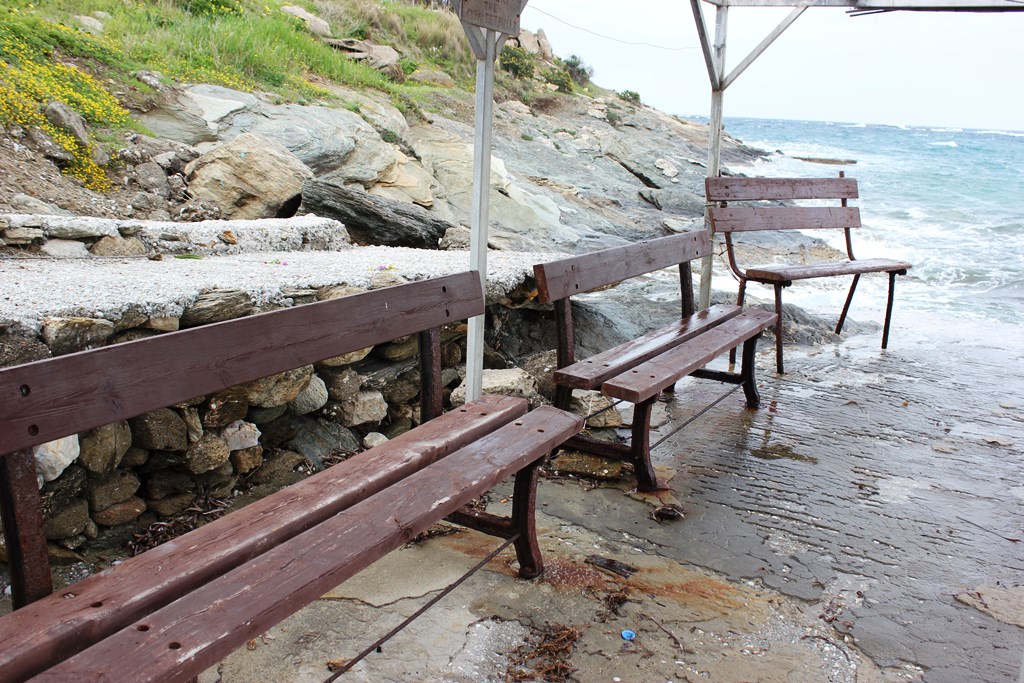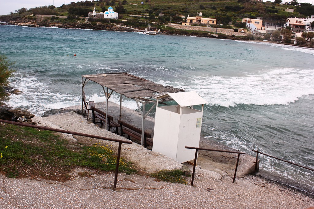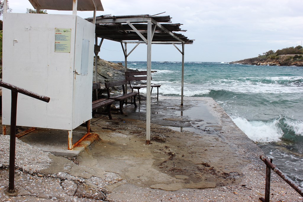 Σε πολύ κακή κατάσταση φαίνεται να βρίσκονται όλα τα αντικείμενα, που βρίσκονται στην αριστερή πλευρά της παραλίας του Μέγα Γιαλού, όπου βρίσκεται χώρος αποδυτηρίων, όπως επίσης και χώρος με παγκάκια και στέγαστρο για την εξυπηρέτηση των λουομένων.