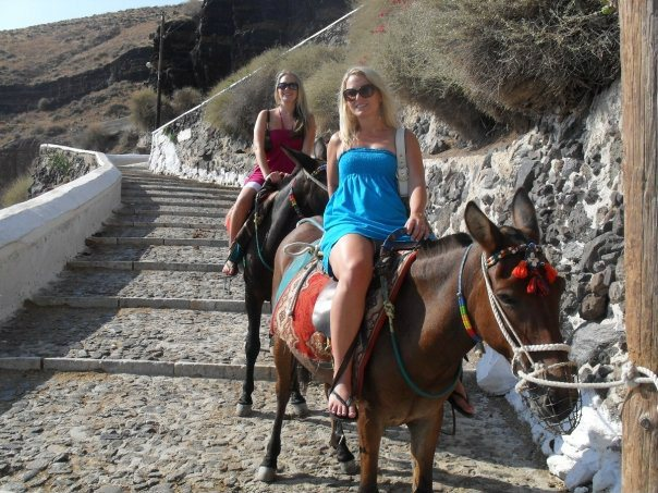 «Μόλις φτάσαμε στα Φηρά, αποφασίσαμε να κατεβούμε τα 588 σκαλιά που περνούν μπροστά από την καλντέρα», αναφέρει η Karissa, προσθέτοντας πως «για να το κάνει κανείς αυτό μπορεί να κατέβει με τα πόδια, να χρησιμοποιήσει το τελεφερίκ ή να πάρει γαϊδουράκι».