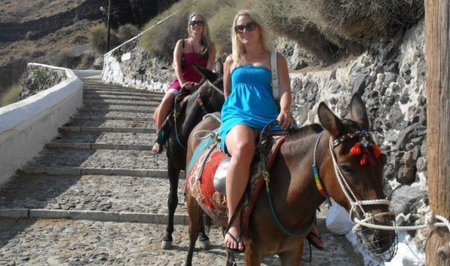 Ταξίδι και κατάβαση της καλντέρας με γαϊδουράκι