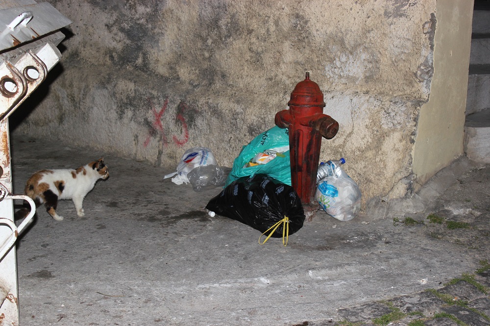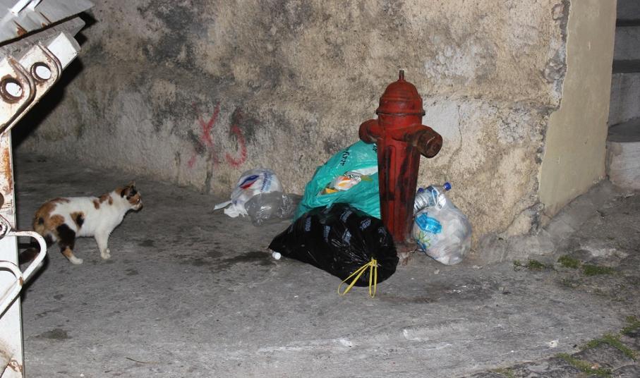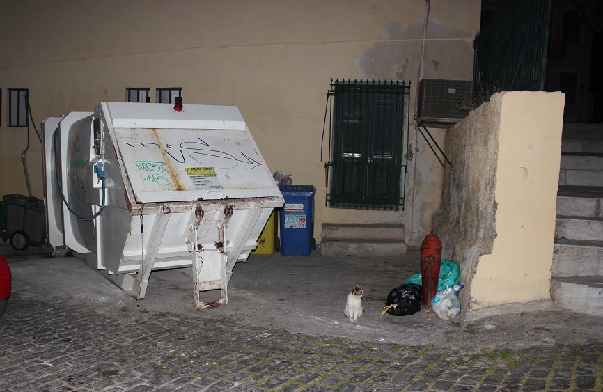 Παρά το γεγονός, πως, δεν αποτελεί καθημερινή εικόνα η ύπαρξη απορριμμάτων στη μέση του δρόμου, τα οποία πλησιάζουν οι γάτες της περιοχής με ό,τι αυτό συνεπάγεται στη διασπορά των άχρηστων αντικειμένων σε απόσταση αναπνοής από τον κεντρικό δρόμο που οδηγεί στον ιστορικό “Απόλλωνα”, αλλά και πως μερικές ημέρες μόνον παραμένουν οι σακούλες εντός των τροχοφόρων κάδων με απορρίμματα μέσα, ωστόσο, έχει παρατηρηθεί από πεζούς αρκετές φορές μία εικόνα που δεν πρέπει να υφίσταται στο κέντρο της πόλης.