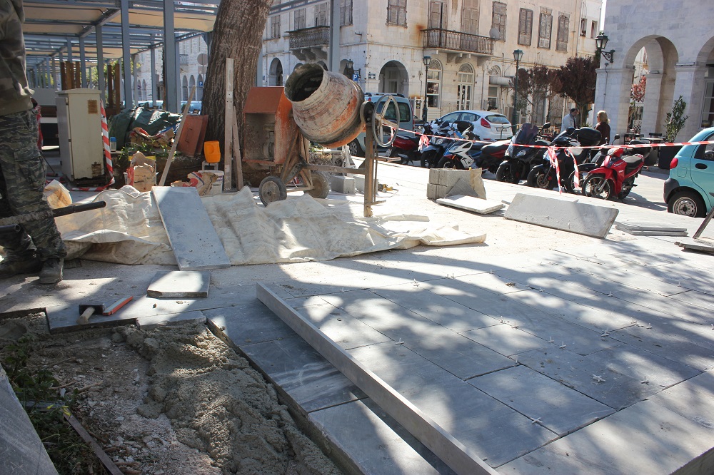Στην αποκατάσταση της πλακόστρωσης στο δυτικό τμήμα της πλατείας Μιαούλη και συγκεκριμένα στην αριστερή πλευρά, προχώρησαν εργάτες του Δήμου Σύρου – Ερμούπολης την Τετάρτη και την Πέμπτη το μεσημέρι προκειμένου να αποκατασταθούν οι πλάκες που έσπασαν από τις ρίζες ενός δέντρου.