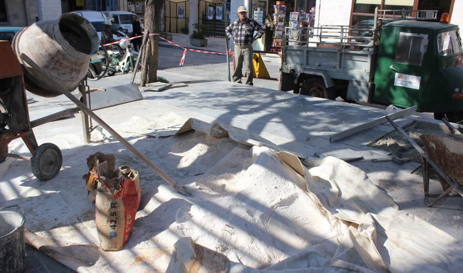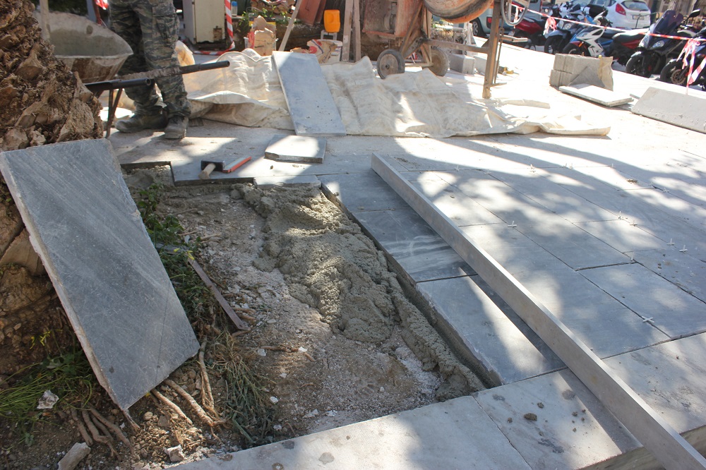 Αποκατάσταση πλακόστρωσης στην πλατεία Μιαούλη