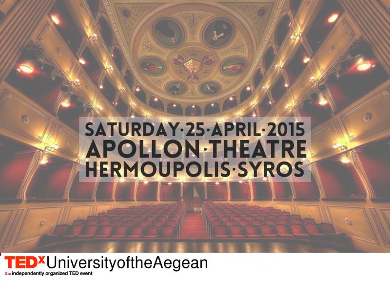 Μία ημέρα έμεινε για το πρώτο TEDx του Πανεπιστημίου Αιγαίου στην Ερμούπολη με στόχο τη δημιουργία ενός περιβάλλοντος, στο οποίο άνθρωποι με συναρπαστικές ιδέες και εμπειρία στη διεκδίκηση των κατάλληλων εφοδίων για ένα προσφορότερο μέλλον, φιλοδοξούν να εμπνεύσουν το κοινό, δίνοντάς τους το κίνητρο για πραγματική δράση.