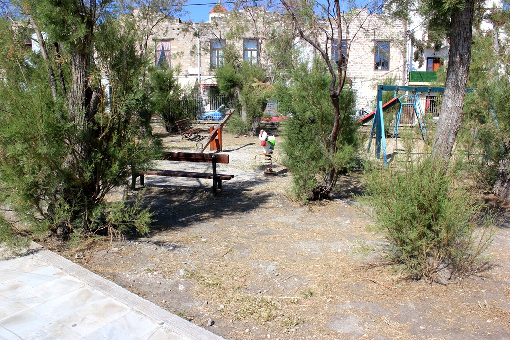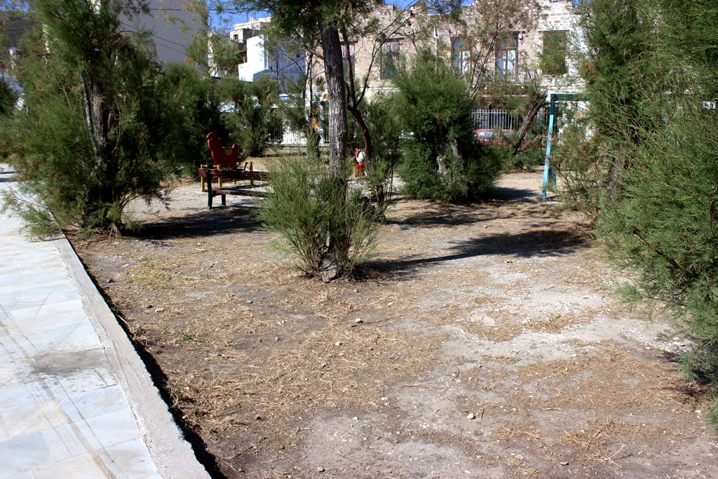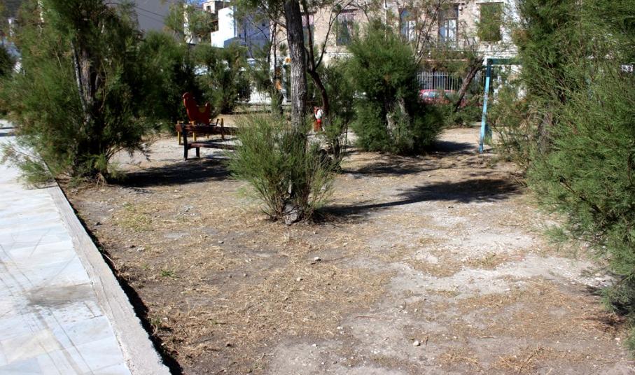 Για λόγους ευπρεπισμού αλλά και ασφάλειας, για τους μικρής ηλικίας επισκέπτες της παιδικής χαράς, τα δέντρα κλαδεύτηκαν επιμελώς, ενώ παράλληλα απομακρύνθηκαν τα αγριόχορτα.