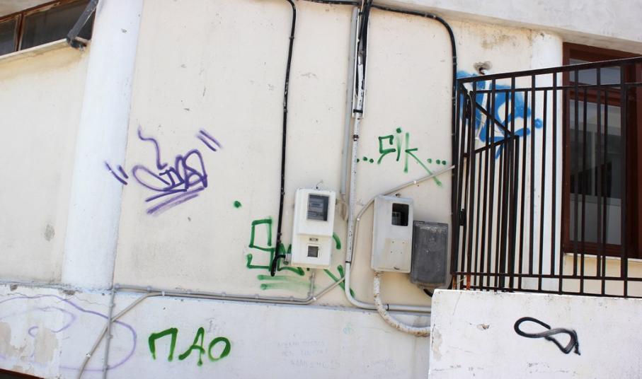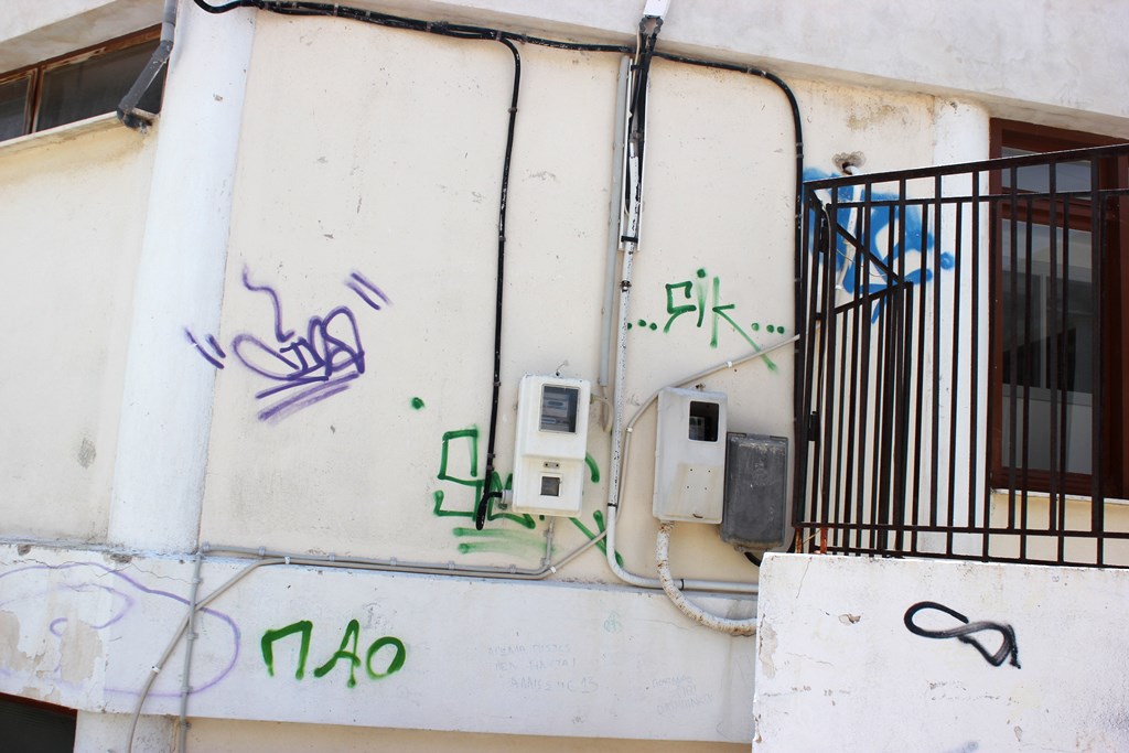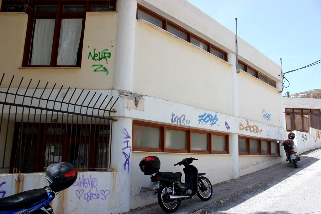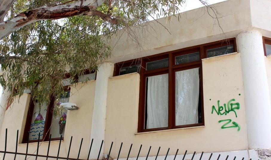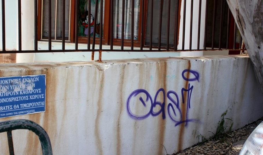 Σε διαθέσιμο «καμβά» για γκράφιτι, έχουν μετατραπεί και οι τοίχοι του Παιδικού Σταθμού της Ερμούπολης, στην περιοχή του Ξηρόκαμπου.