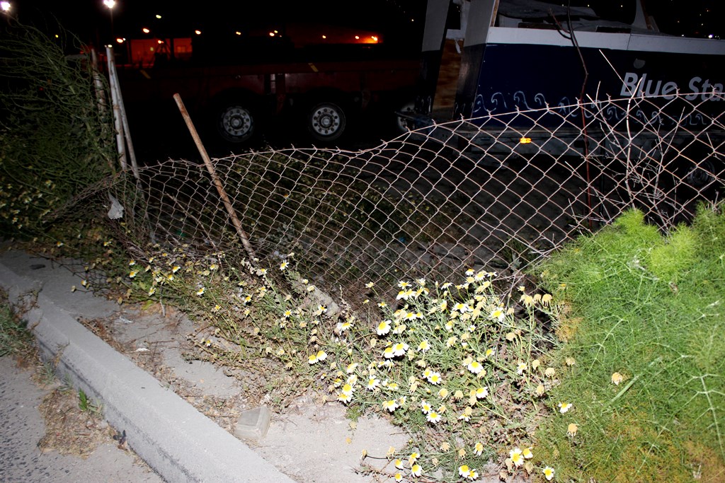 Επιπλέον, το σημείο απέναντι από το πρατήριο καυσίμων, πριν την κύρια είσοδο, δείχνει να βρίσκεται σε κάκιστη κατάσταση, λόγω των λυγισμένων συρματοπλεγμάτων, των απεριποίητων φυτών, που καλύπτουν σχεδόν όλο το υποτυπώδες πεζοδρόμιο, αλλά και των σκουπιδιών, που συσσωρεύονται εκεί.