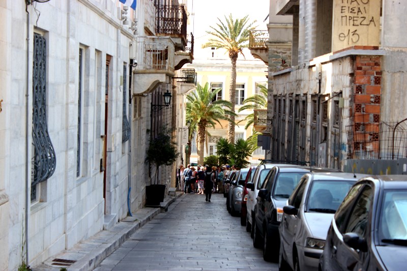 Με αφορμή τις εργασίες, οι οποίες έχουν ξεκινήσει, προκειμένου σταδιακά να υπάρξει μια καθολική αλλαγή στο παραλιακό μέτωπο του ιστορικού κέντρου της Ερμούπολης, όπως το γνωρίζει η τοπική κοινωνία ως σήμερα και την επιβολή των έκτακτων κυκλοφοριακών μέτρων, η «Κοινή Γνώμη» πραγματοποίησε οδοιπορικό, στους δρόμους της πόλης, κεντρικούς και μικρότερους, από τις πρωινές ώρες, έως αργά το μεσημέρι μιας τυπικής εργάσιμης ημέρας του Μαΐου, όταν η τουριστική κίνηση ακόμη βρίσκεται σε χαμηλά επίπεδα.