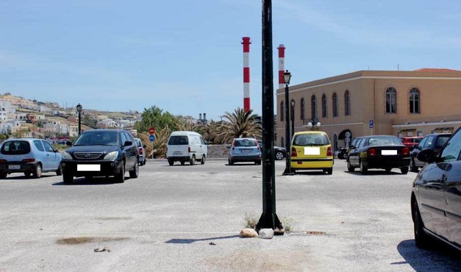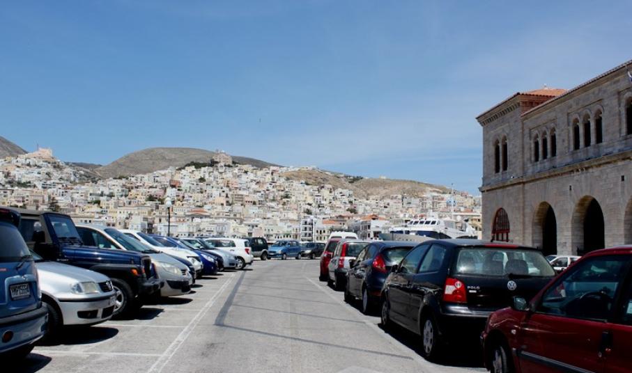 Παράλληλα, τα οχήματα των οδηγών, με προορισμό το κέντρο, από τις πρωινές ώρες στοιχίζονται κατά δεκάδες στους παράδρομους, περιμετρικά της πλατείας Μιαούλη και σε οποιοδήποτε σημείο δίνεται η δυνατότητα, είτε επιτρέπεται η στάθμευση είτε όχι, προκαλώντας μια αντιαισθητική εικόνα συμφόρησης στα ιστορικής αξίας πλακόστρωτα, με μάρμαρο ή γρανίτη, στενά της Ερμούπολης, ενώ παρεμποδίζεται και η διάβαση των υπόλοιπων οχημάτων, των Mini Bus, όπως και των πεζών.