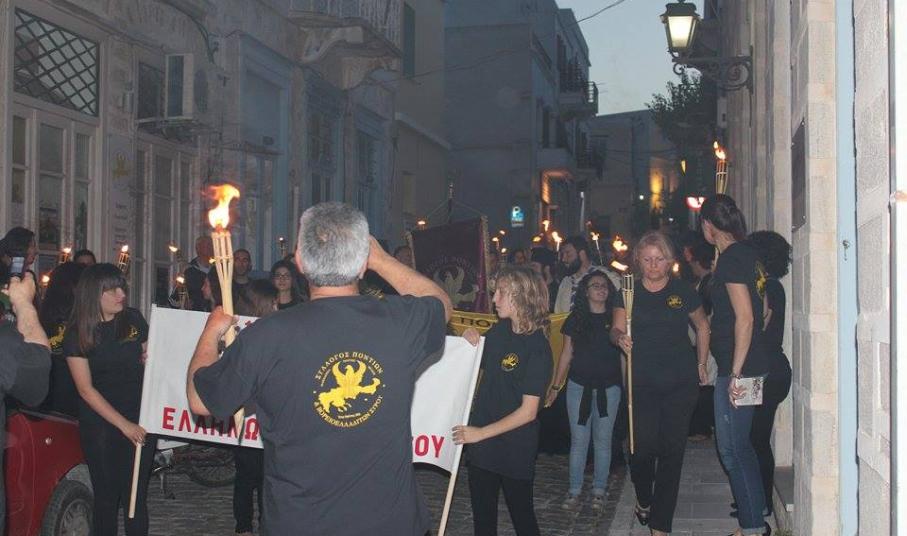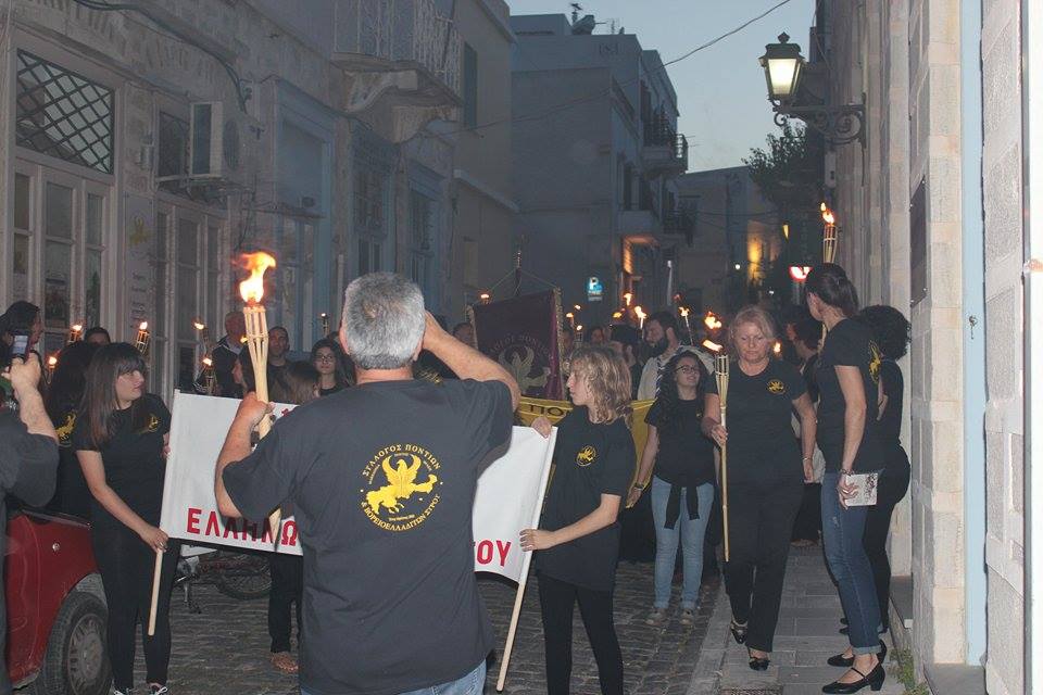 Σε κλίμα συγκίνησης μικρά παιδιά αλλά και μεγαλύτεροι, κρατώντας δάδες αναμμένες , κατευθύνθηκαν το βράδυ της Τρίτης από την παραλία της Ερμούπολης στη θέση Νησάκι όπου ο εφημέριος του Ι.Ν. Κοιμήσεως πατέρας Κώστας Κοντός και ο διάκος του Ι.Ν. Αναστάσεως πατήρ Νικόλαος Γαβαλάς έψαλλαν επιμνημόσυνη δέηση για τους Ελληνες του Πόντου , που εξοντώθηκαν κατά τη διάρκεια της Γενοκτονίας από τους Τούρκους ( 1914-1922). Ακολούθησε η ρίψη στεφάνου στην θάλασσα και η εκδήλωση κορυφώθηκε με την ανάκρουση του Εθνικού Ύμνου.