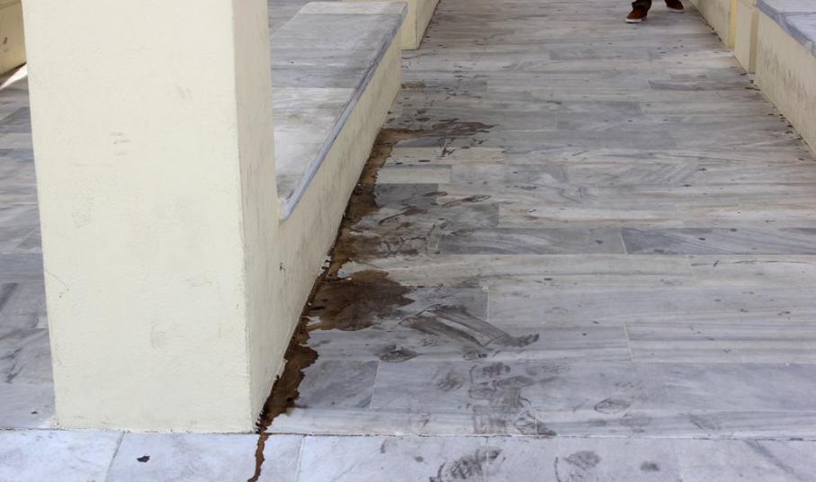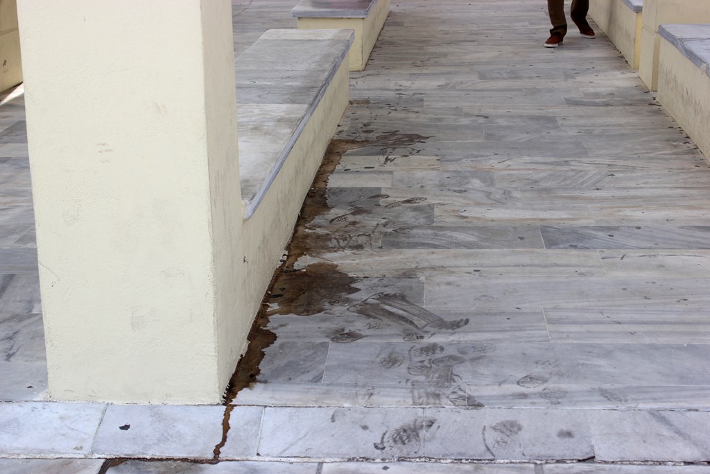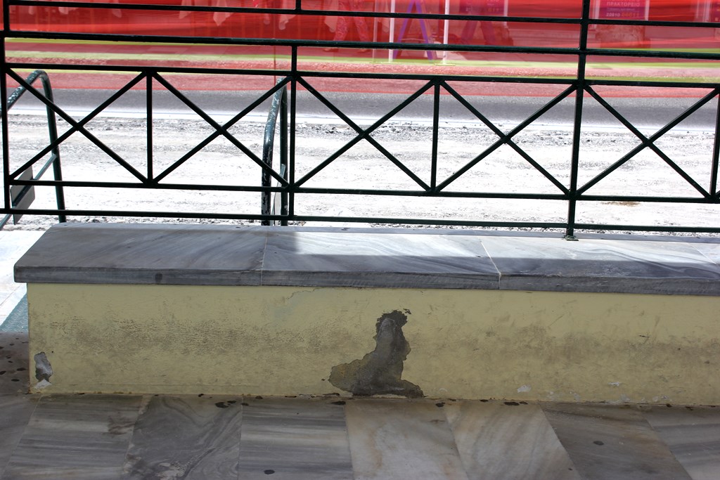 Βρώμικα και παραμελημένα φαίνονται τα στέγαστρα αναμονής των επιβατών, που βρίσκονται έναντι του Επιβατικού Σταθμού, στο λιμάνι της Ερμούπολης.