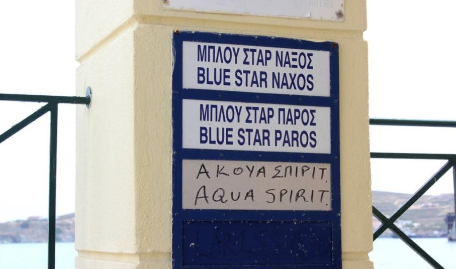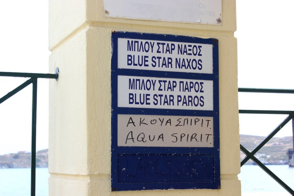 Παράλληλα, στην πινακίδα πληροφόρησης, όπου αναγράφονται τα πλοία, για τα οποία μπορούν να αναμένουν στο χώρο των στεγάστρων οι επιβάτες, υπάρχει αναρτημένο και το πλοίο «Aqua Spirit», το οποίο, όποτε εκτελεί τα δρομολόγιά του, δένει στην προβλήτα που βρίσκεται κοντά στην πιάτσα των ταξί.