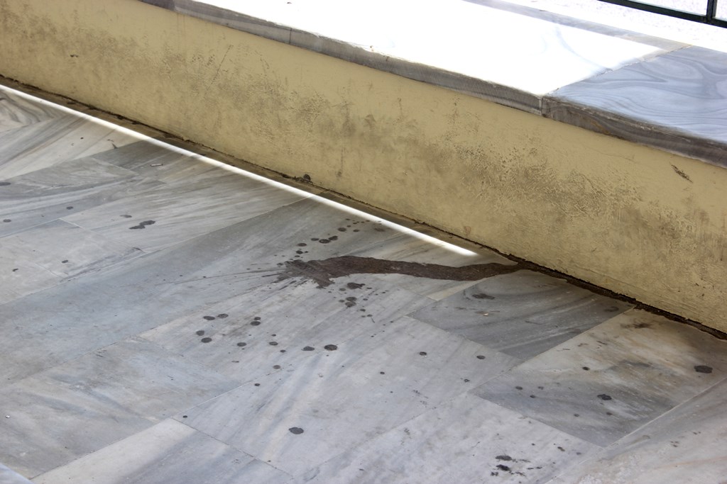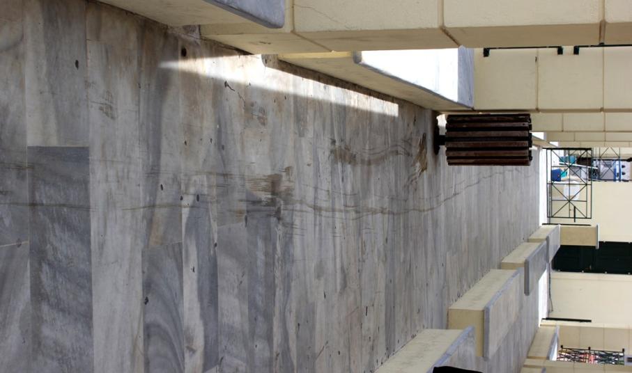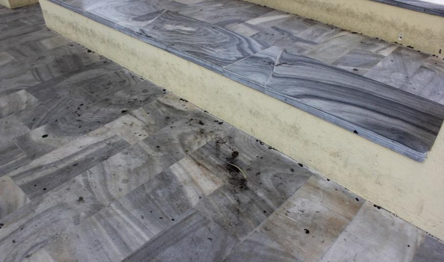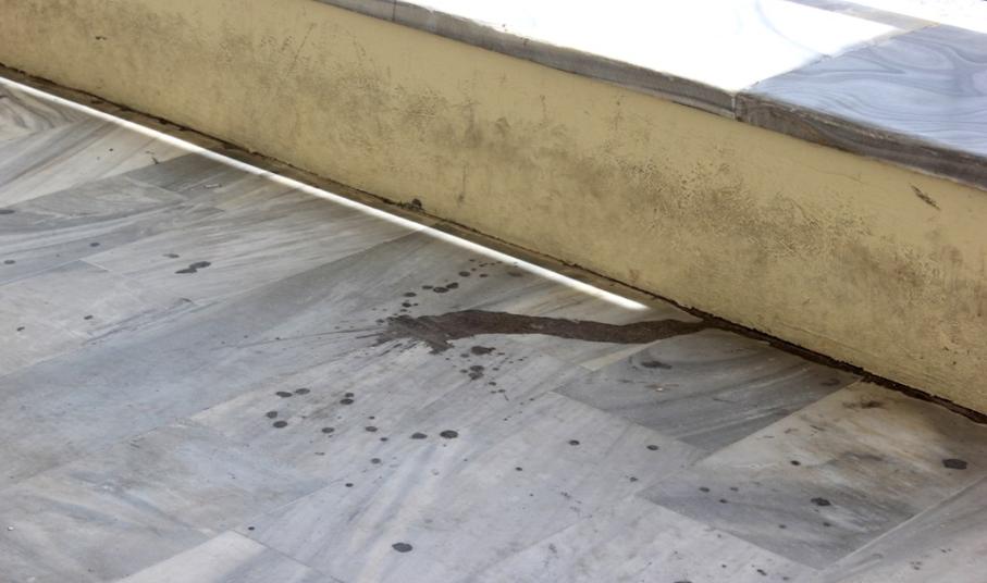 Ο χώρος δείχνει να καθαρίζεται πρόχειρα, καθώς τσίχλες, στίγματα από καφέδες και άλλα σημάδια, κάνουν τα μάρμαρα να φαίνονται αρκετά βρώμικα. Επιπλέον, στον χώρο των στεγάστρων, υπάρχουν οθόνες πληροφόρησης, οι οποίες έχουν εξαιρετικά χαμηλή φωτεινότητα, με αποτέλεσμα να μην είναι δυνατό να διακρίνει κανείς τις πληροφορίες, κατά τις πρωινές ώρες, όπως επίσης και μεγάφωνα, τα οποία δεν έχουν χρησιμοποιηθεί, από τότε που εγκαταστάθηκαν και συνεπώς είναι αμφίβολη η δυνατότητα λειτουργίας τους στην παρούσα φάση.