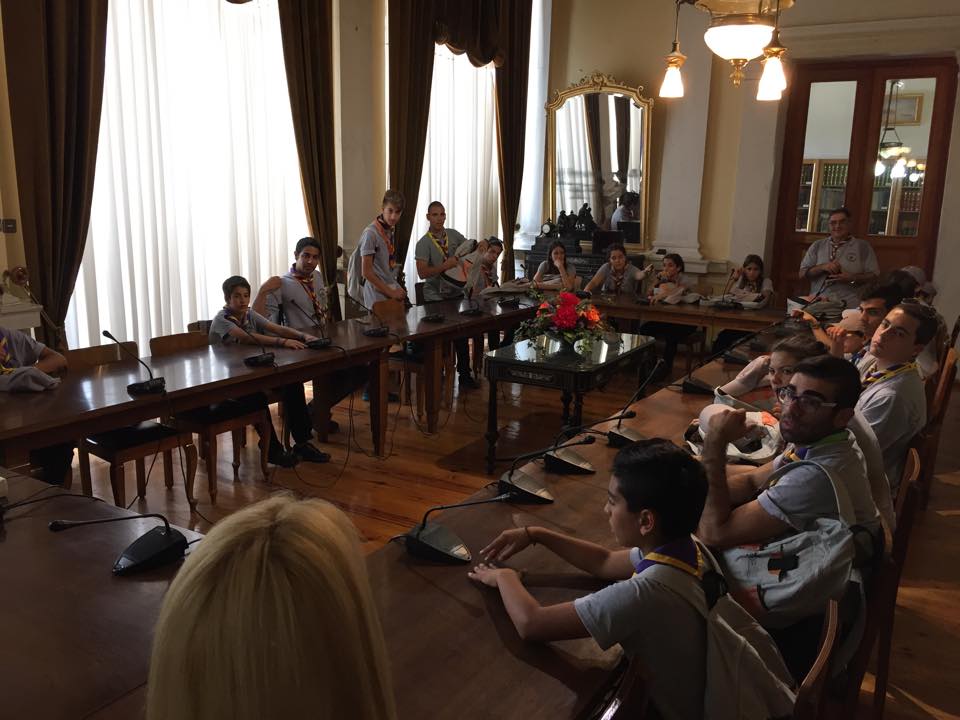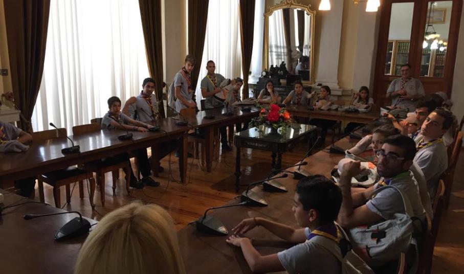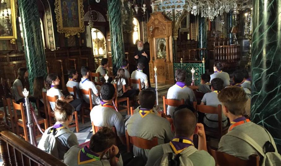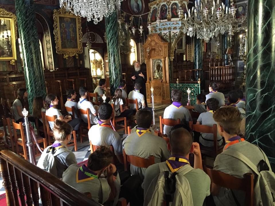 Η ομάδα έφτασε στο νησί χθες το πρωί με το κρουαζιερόπλοιο “Salamis Filoxenia”, στο πλαίσιο της εκπαιδευτικής κρουαζιέρας τους σε Πάτμο, Σύρο και Σύμη. Τα 26 μέλη υποδέχτηκε στο λιμάνι ο Περιφερειακός Έφορος Κυκλάδων Σωτήρης Φραγκίδης, συνοδευόμενος από βαθμοφόρους των προσκοπικών συστημάτων της Σύρου. Η ομάδα ξεναγήθηκε στο Δημαρχιακό Μέγαρο από την Αντιδήμαρχο Πολιτισμού κ. Θωμαή Μενδρινού, στον Ιερό Ναό Κοιμήσεως της Θεοτόκου από τον π. Κωνσταντίνο Κοντό, στο Μουσείο Αντιγράφων Κυκλαδικής Τέχνης από την κ. Μαρία Κάπαρη Στέλλα και στο Βιομηχανικό Μουσείο Ερμούπολης από τον υπεύθυνο κ. Αχιλλέα Δημητρόπουλο.