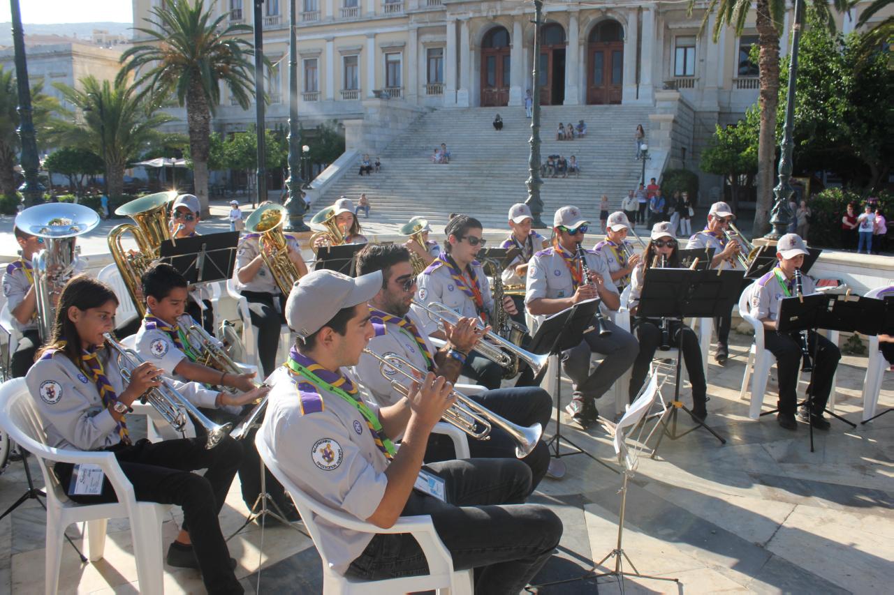 Στη Σύρο γιόρτασε την Ευρωπαϊκή Ημέρα Μουσικής η Φιλαρμονική Προσκόπων Λεμεσού, η οποία βρέθηκε για λίγες ώρες στην πρωτεύουσα των Κυκλάδων, έχοντας την ευκαιρία να θαυμάσει τις ομορφιές της, αλλά και να χαρίσει στους κατοίκους της μια μικρή συναυλία στην πλατεία Μιαούλη, ως ένδειξη ευγνωμοσύνης προς την Περιφερειακή Εφορεία Κυκλάδων και τον Δήμο Σύρου – Ερμούπολης για τη θερμή υποδοχή που της επιφύλαξαν.